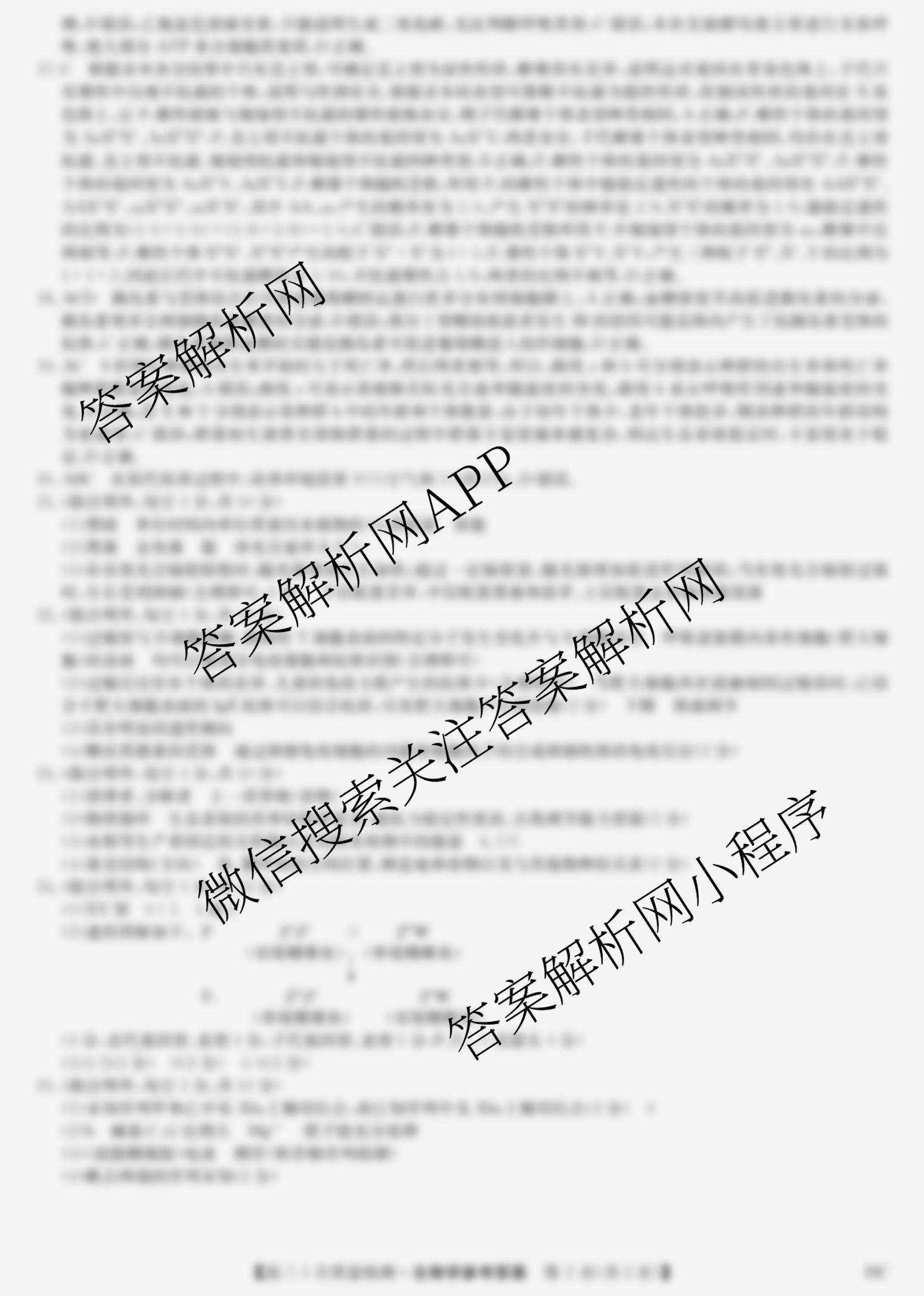 - (高三)[九师联盟]2025届1月质量检测(1.17-18)生物(LY)答案