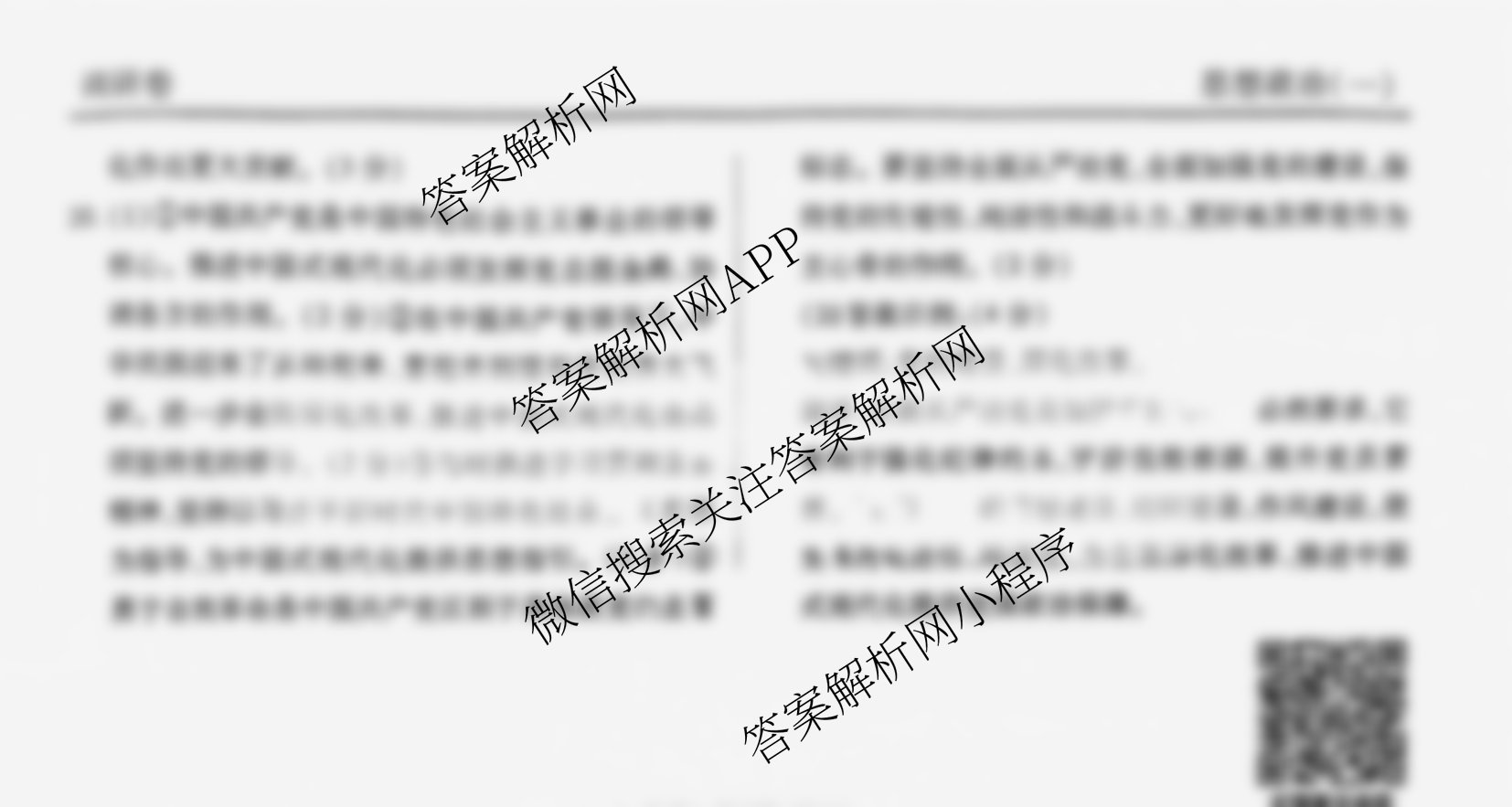 - (高三)[衡水金卷先享题]调研卷 2025年普通高中学业水平选择性考试模拟试题 政治(S)(一)1答案