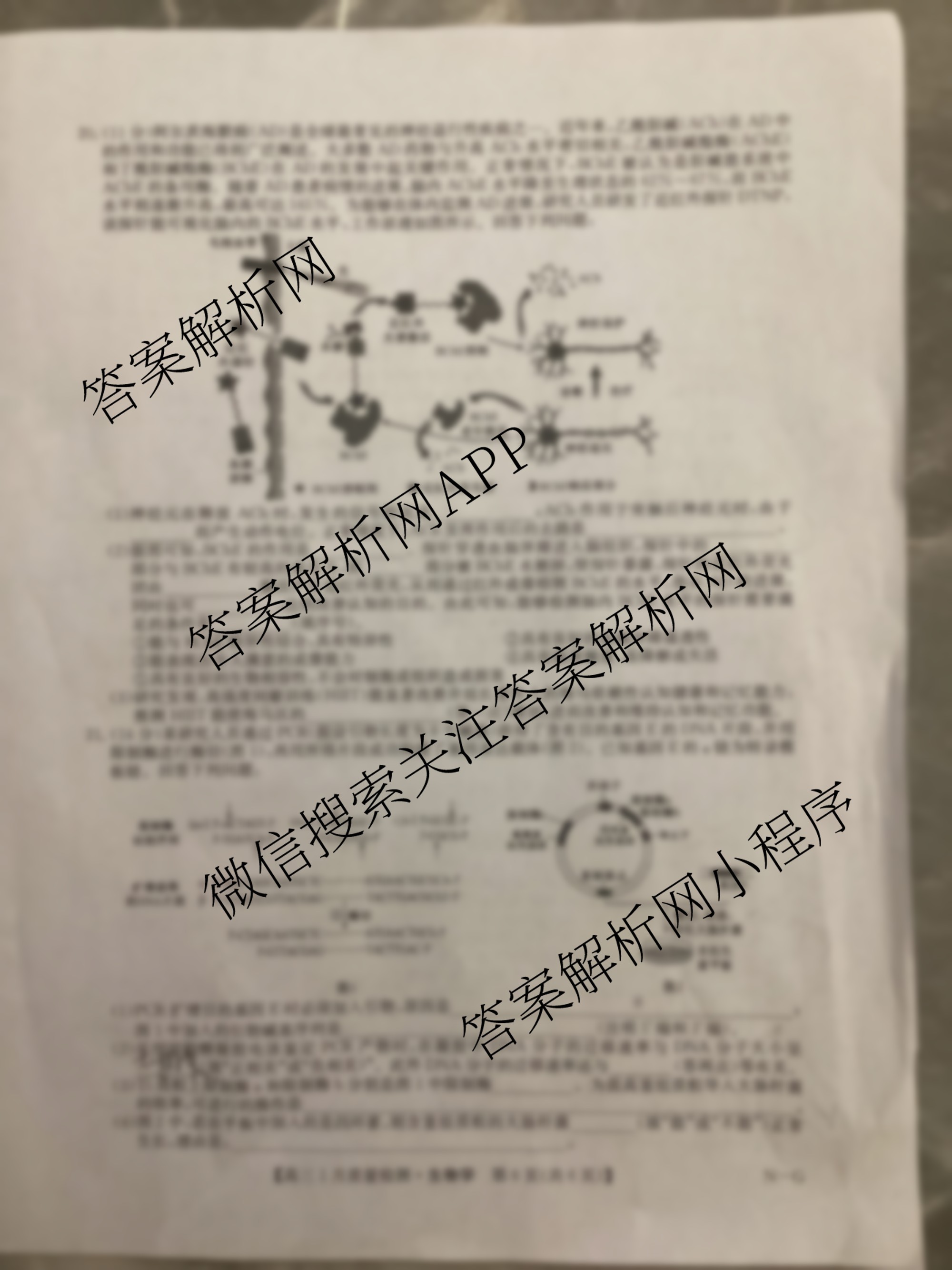 - [高三]九师联盟·2025届1月质量检测巩固卷(G)(1.22-23)生物(X)答案