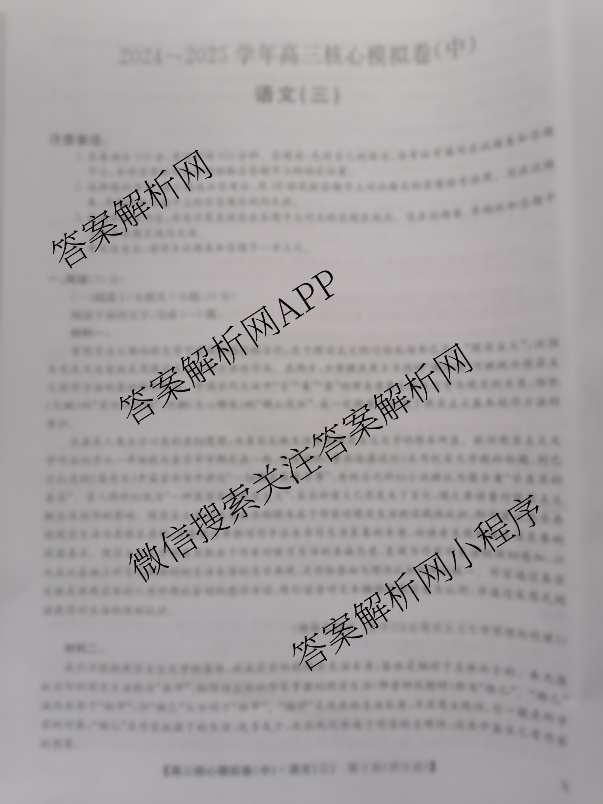 - [高三]九师联盟·2024~2025学年核心模拟卷(中)(三)3语文(X)试题