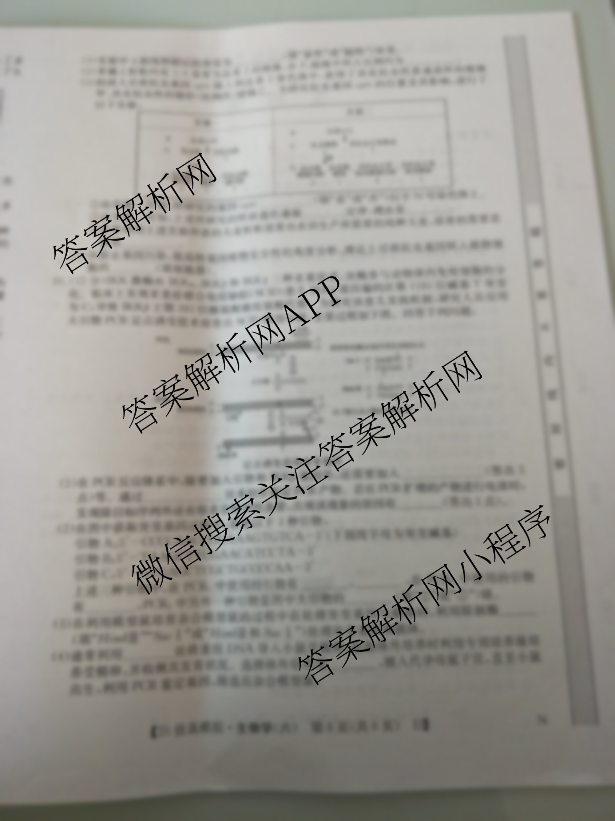 - [高三]2025年普通高校招生选择性考试仿真模拟卷 生物学(A N)(六)6答案