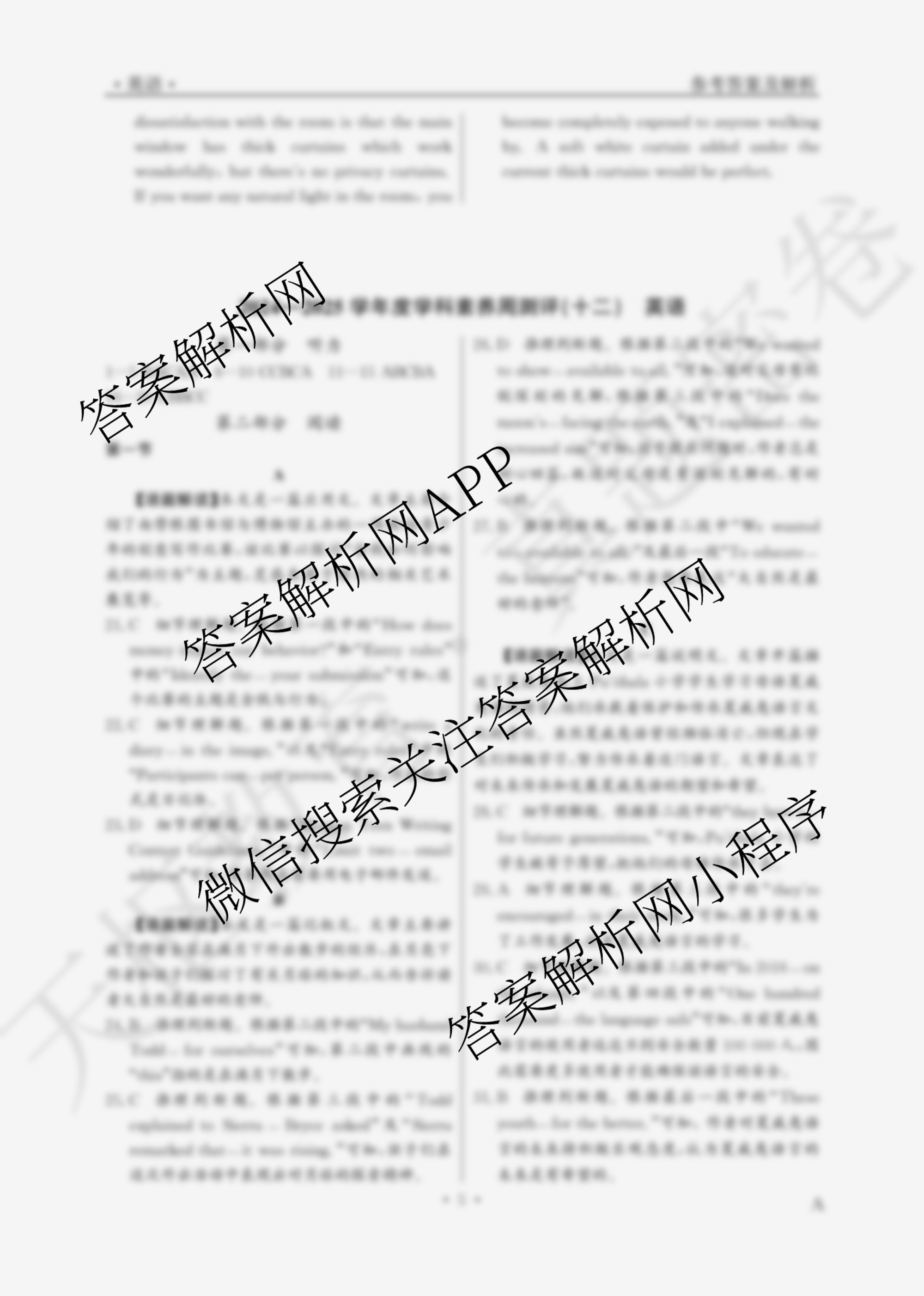 衡水真题密卷2024-2025学年度学科素养周测评 英语(A)(十一)11答案
