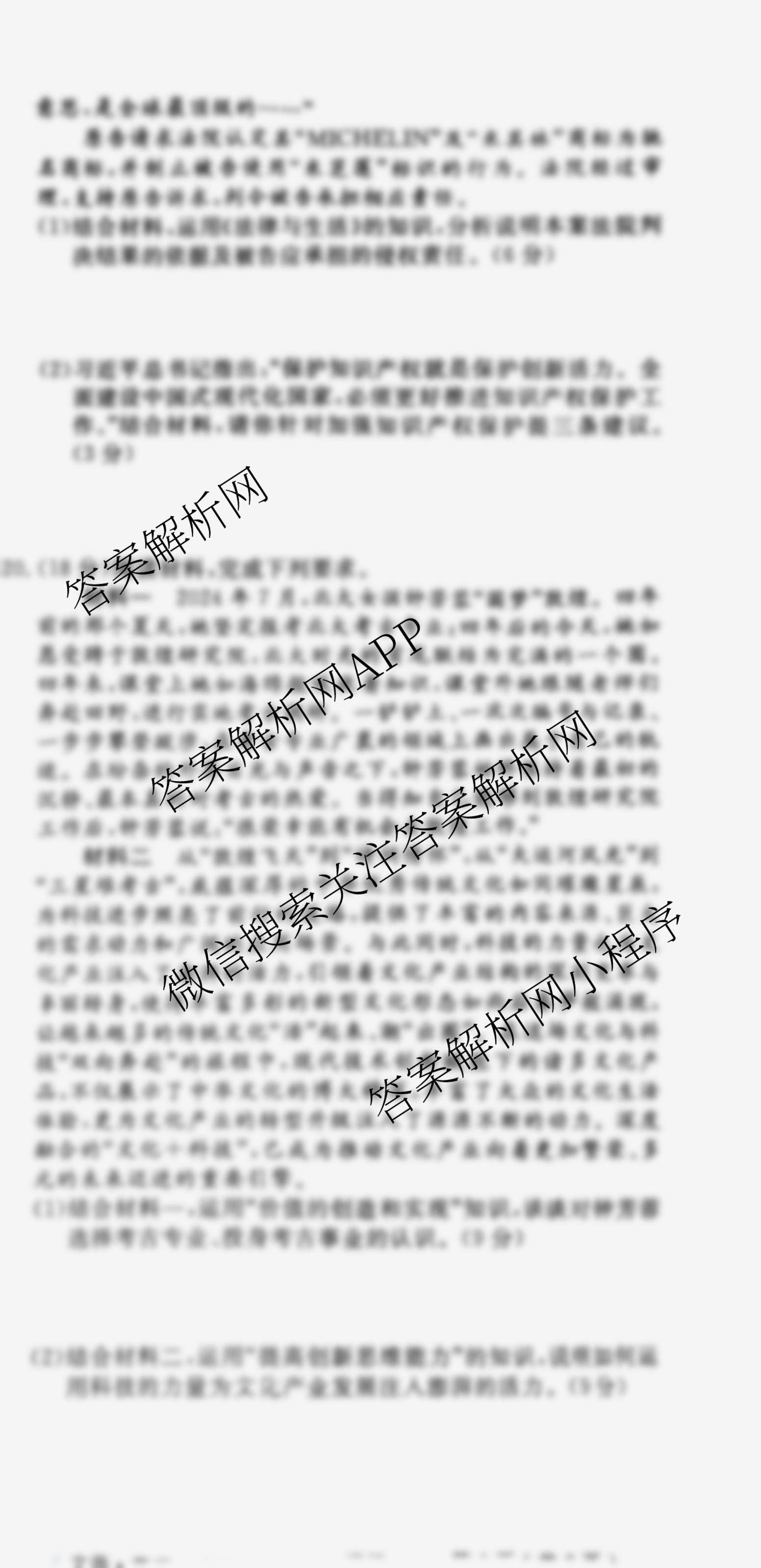 - [高三][黄冈八模]·2025届政治模拟测试卷(一)1政治(安徽)答案