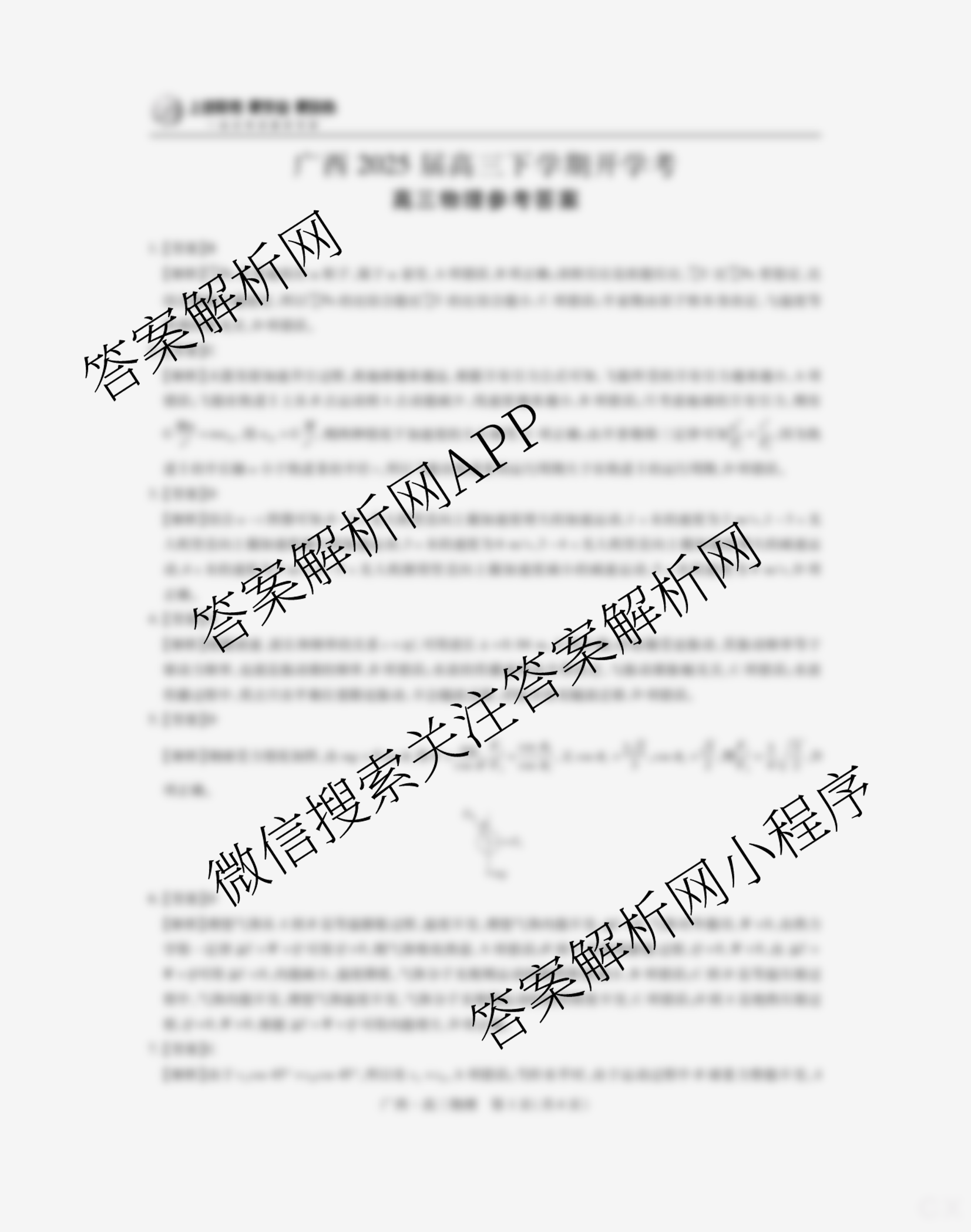- (高三)[上进联考]·广西2025届下学期开学考物理试题