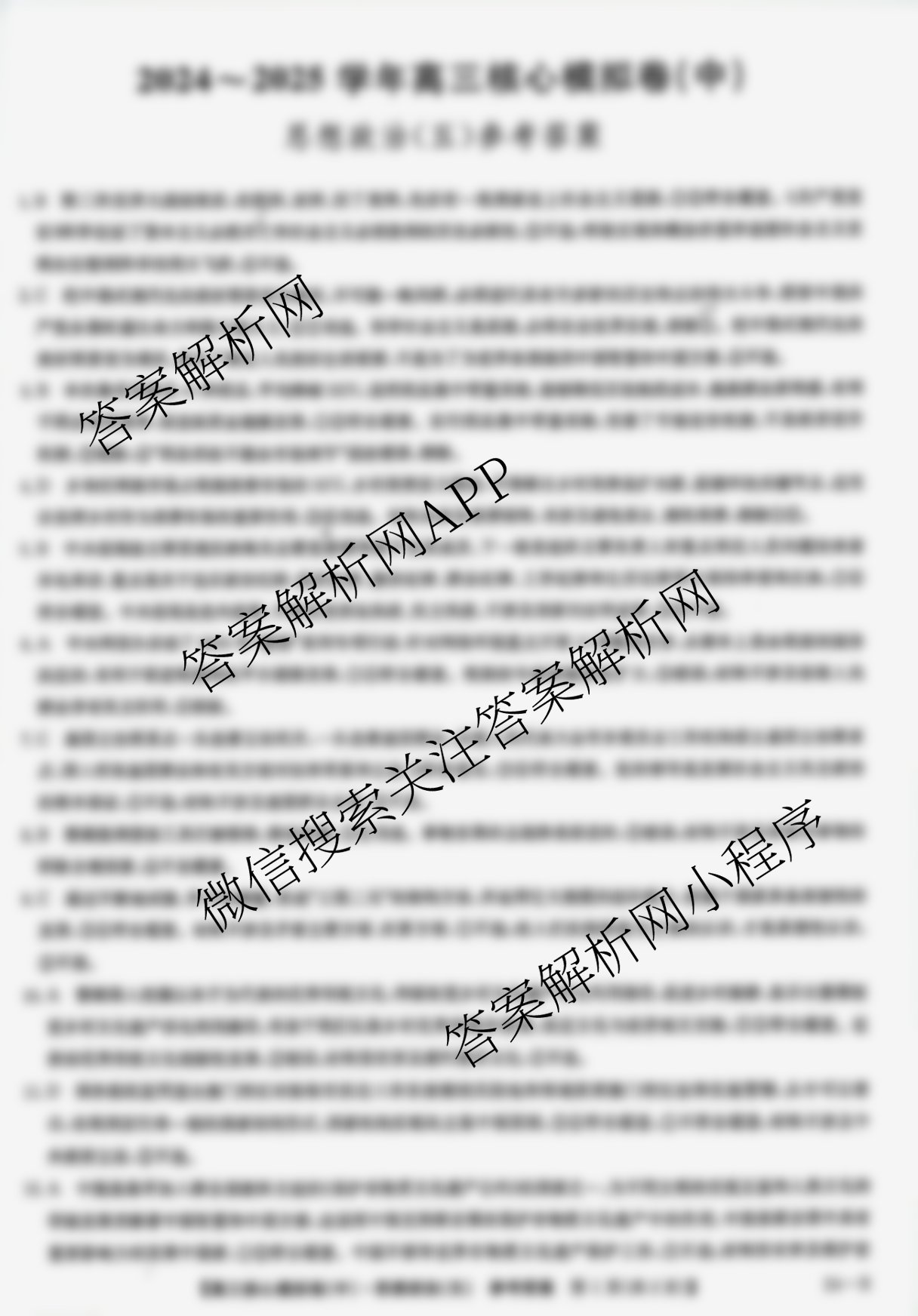 - [九师联盟]2024~2025学年[高三]核心模拟卷(中)(五)5政治(JX)答案