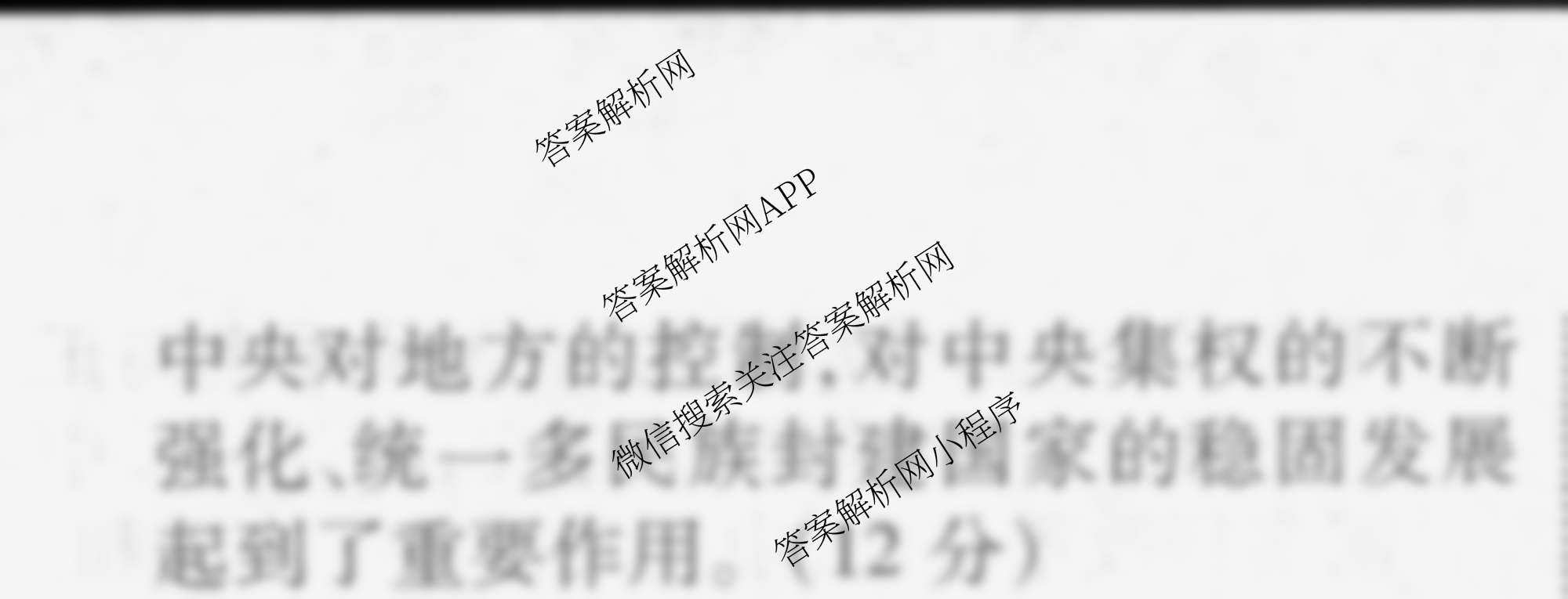 衡水金卷先享题2024-2025学年度高二寒假作业 历史 作业一答案