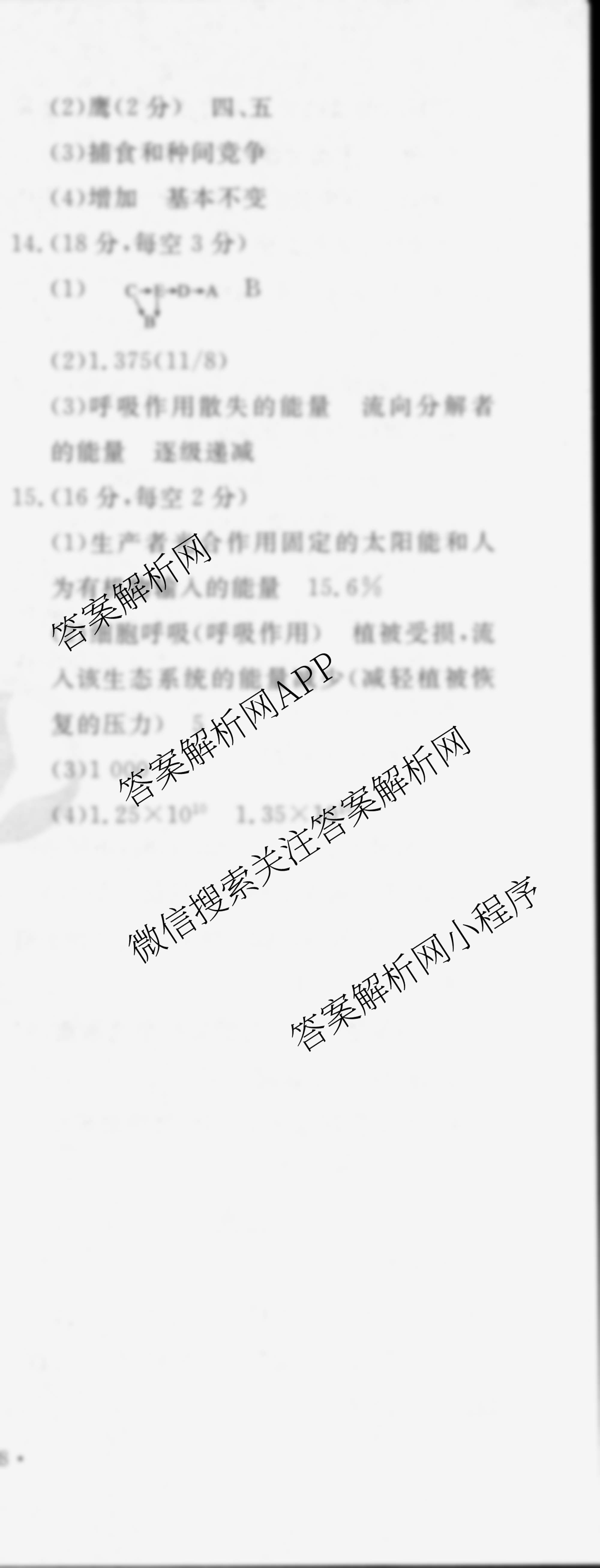 衡水金卷先享题2024-2025学年度高二寒假作业 生物 作业十五答案