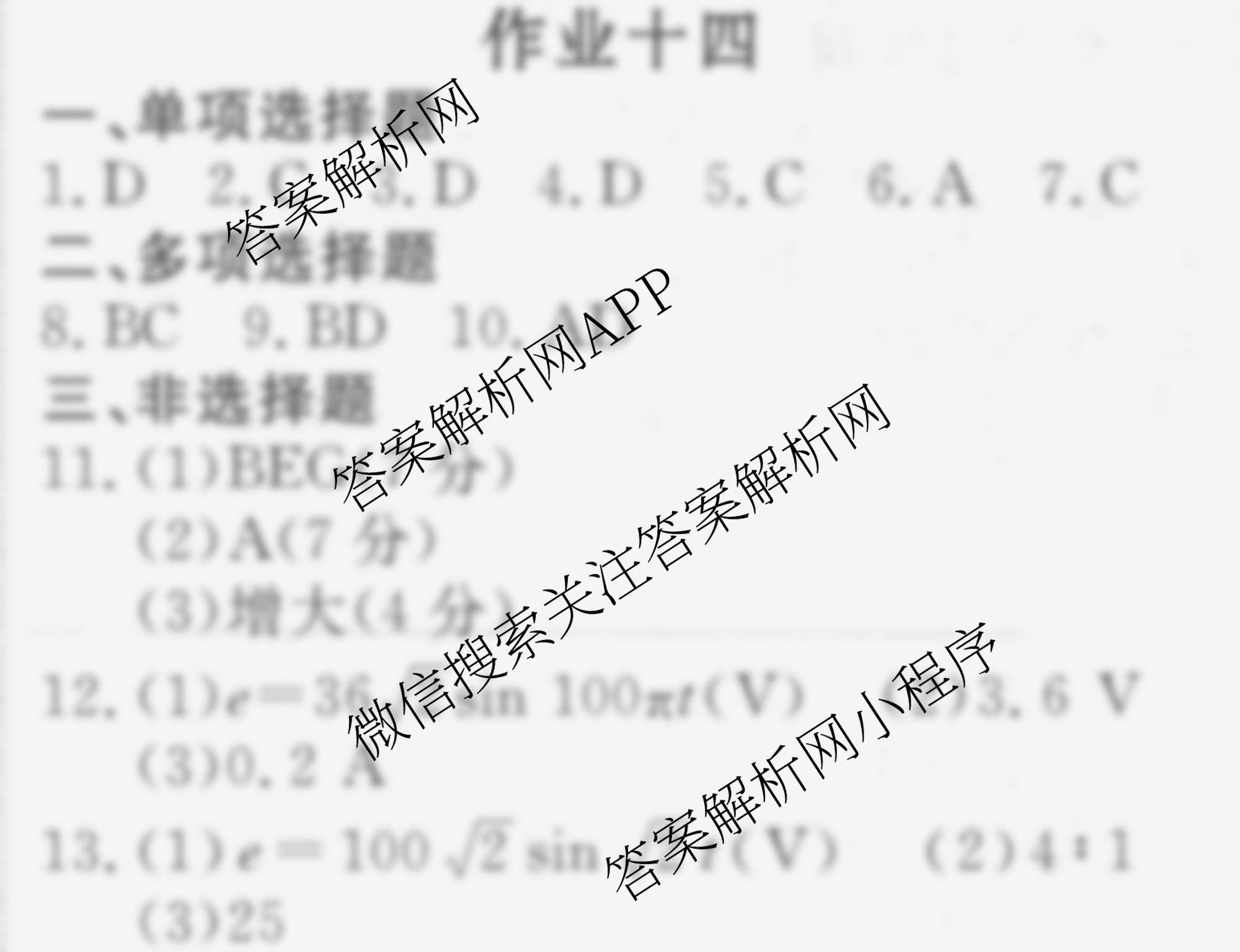 衡水金卷先享题2024-2025学年度高二寒假作业 物理 作业十四答案
