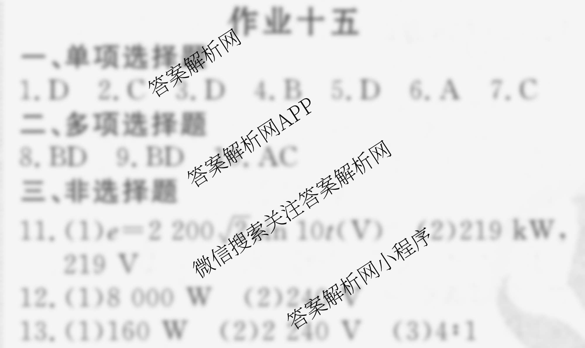 衡水金卷先享题2024-2025学年度高二寒假作业 物理 作业十五答案