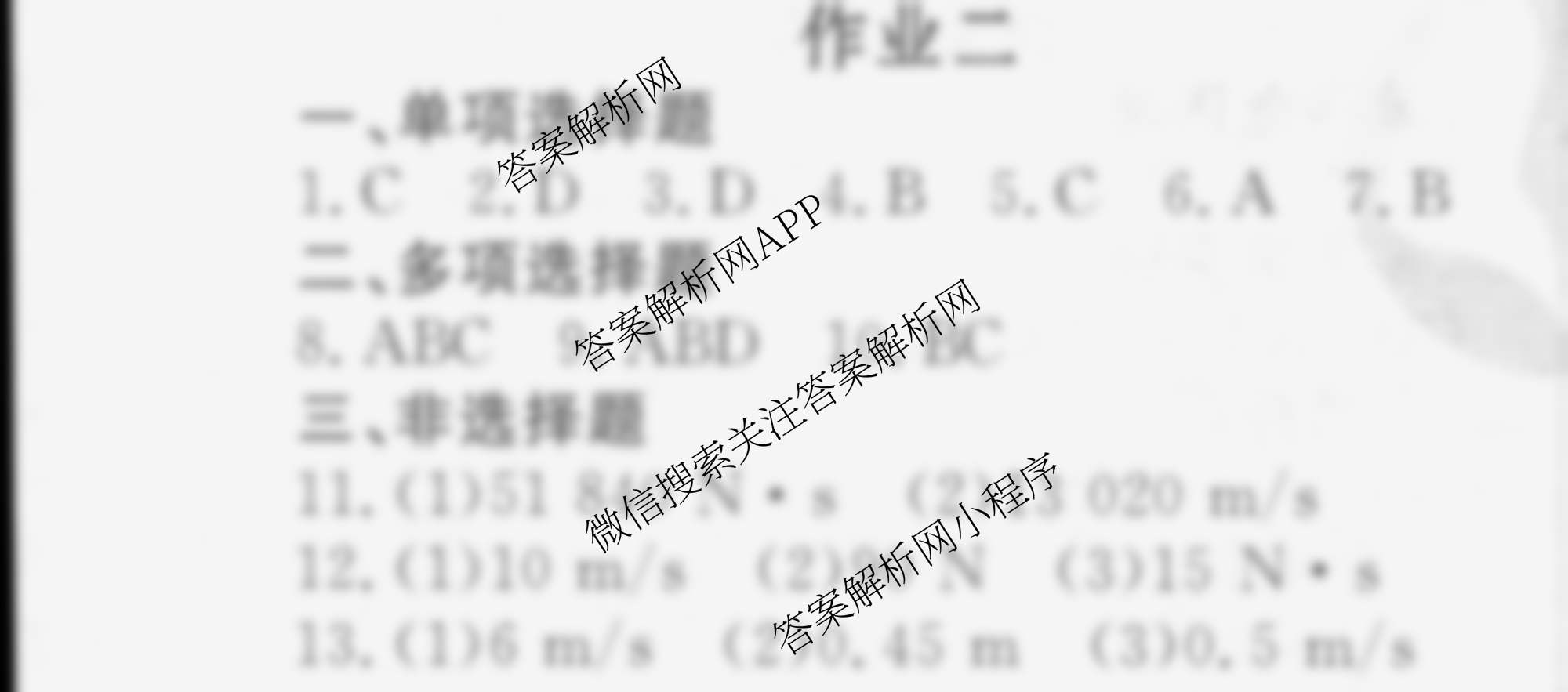 衡水金卷先享题2024-2025学年度高二寒假作业 物理 作业二答案