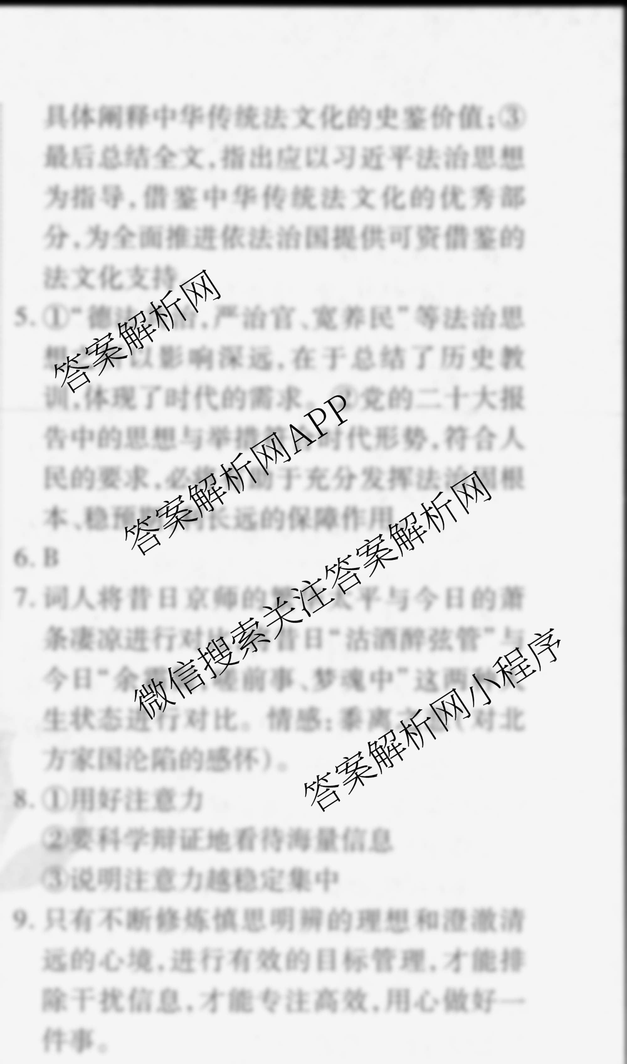 衡水金卷先享题2024-2025学年度高二寒假作业 语文 作业八答案