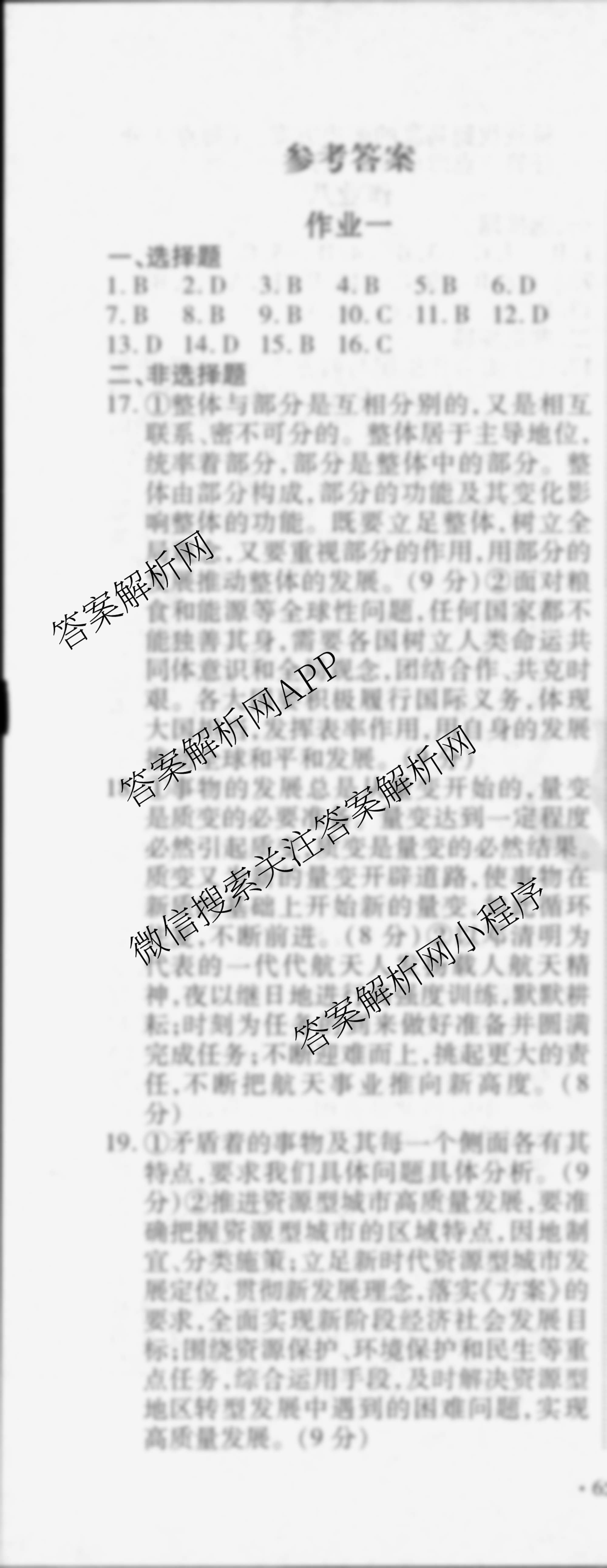 衡水金卷先享题2024-2025学年度高二寒假作业 政治 作业一答案