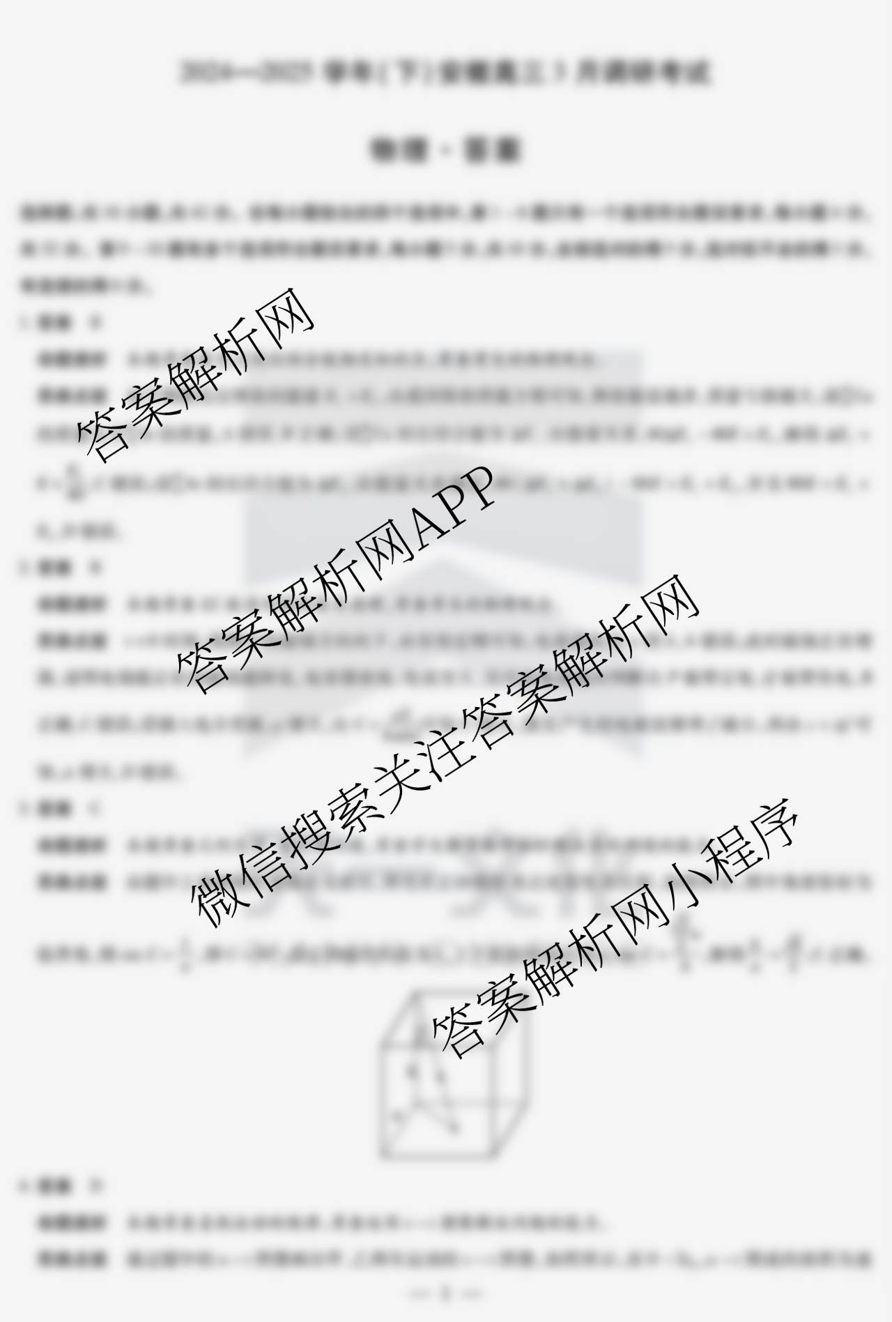 - [高三][天一大联考]·2024~2025学年(下)安徽3月调研考试物理答案