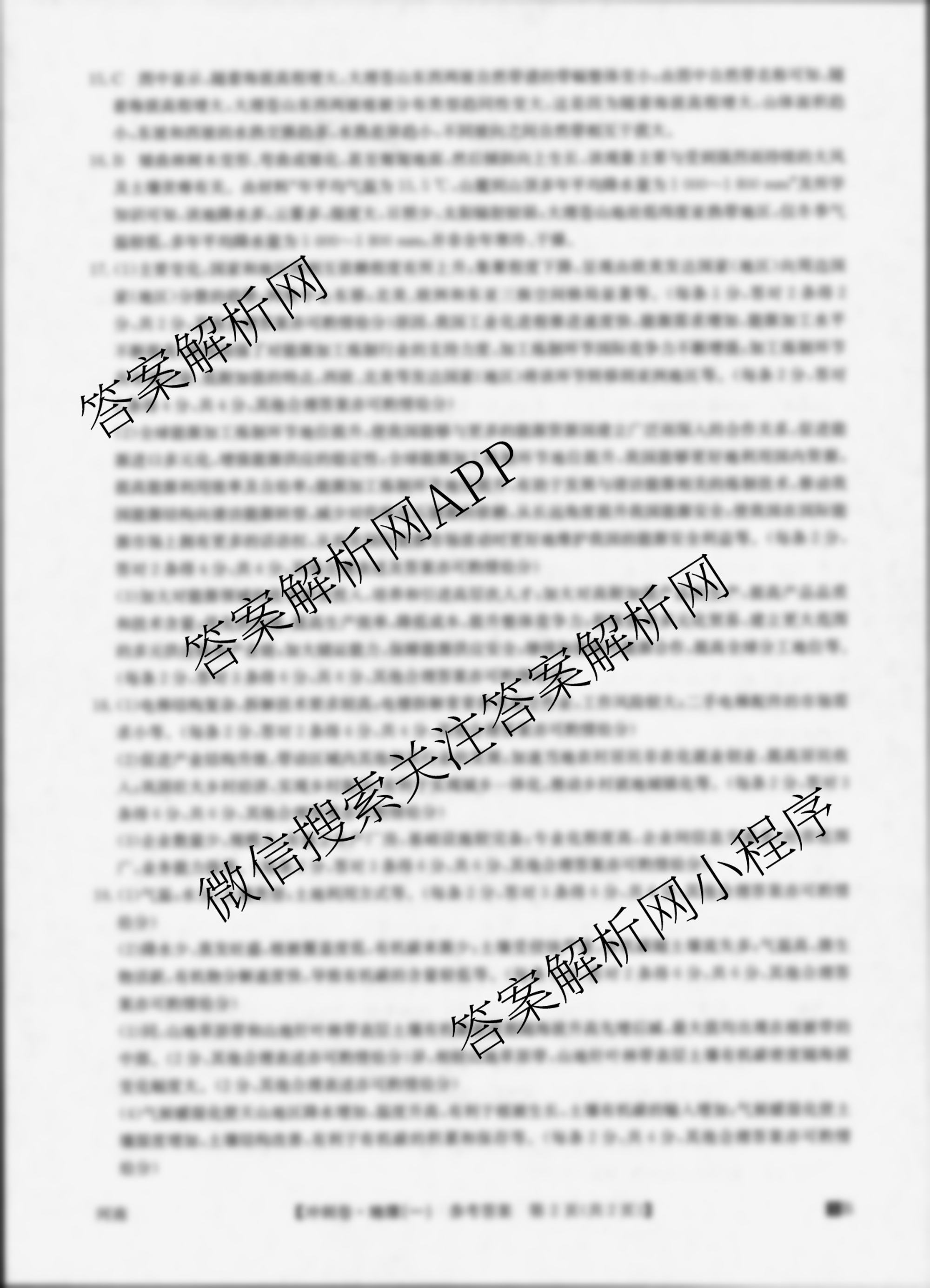 - [高三]2025年四川省普通高中学业水平选择性考试冲刺压轴卷(一)1地理(四川)答案
