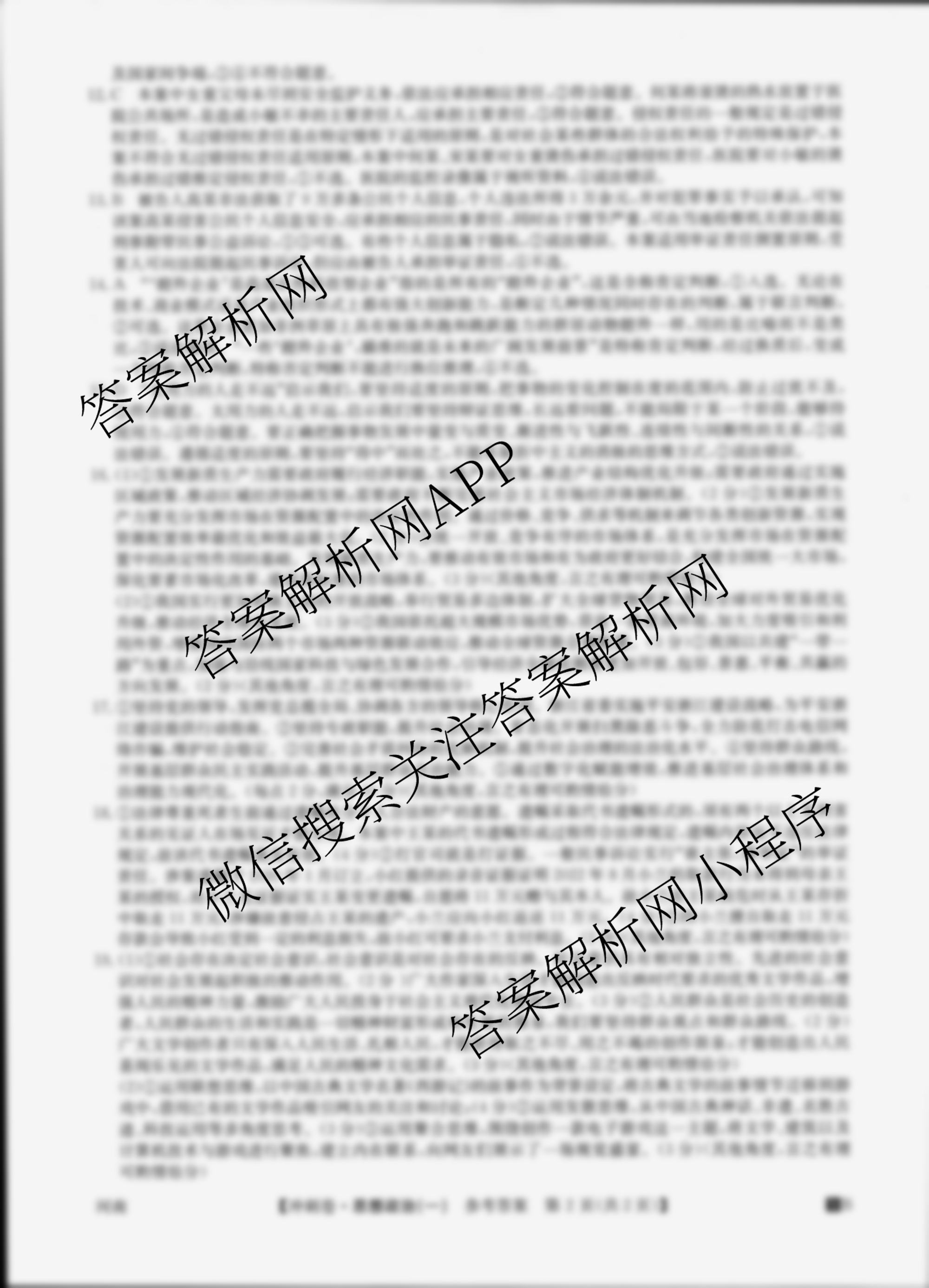 - (高三)2025年安徽省普通高中学业水平选择性考试冲刺压轴卷(一)1政治(安徽)答案