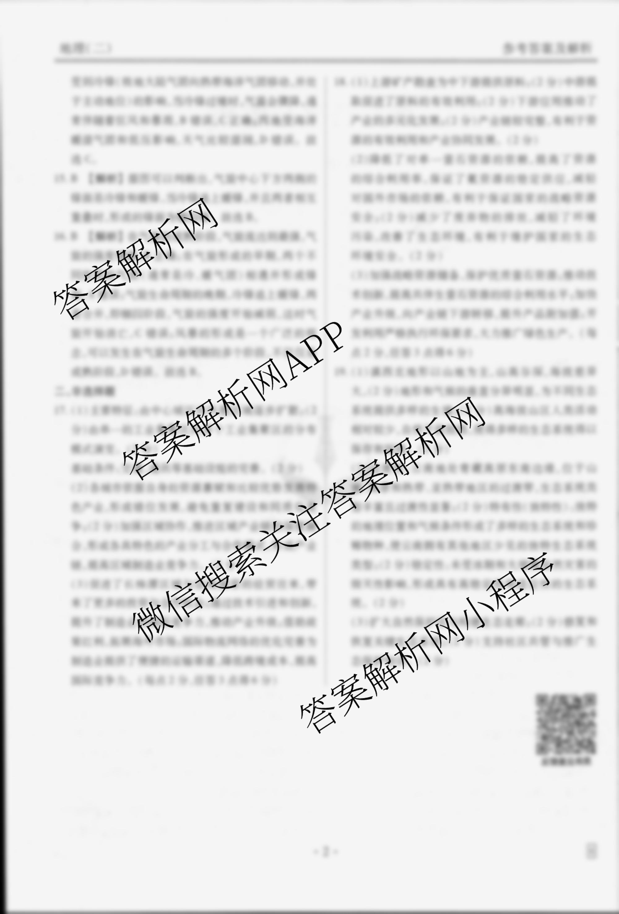 - [高三](衡水金卷先享题)·信息卷 2025年普通高中学业水平选择性考试模拟试题(二)2地理(HJ)答案