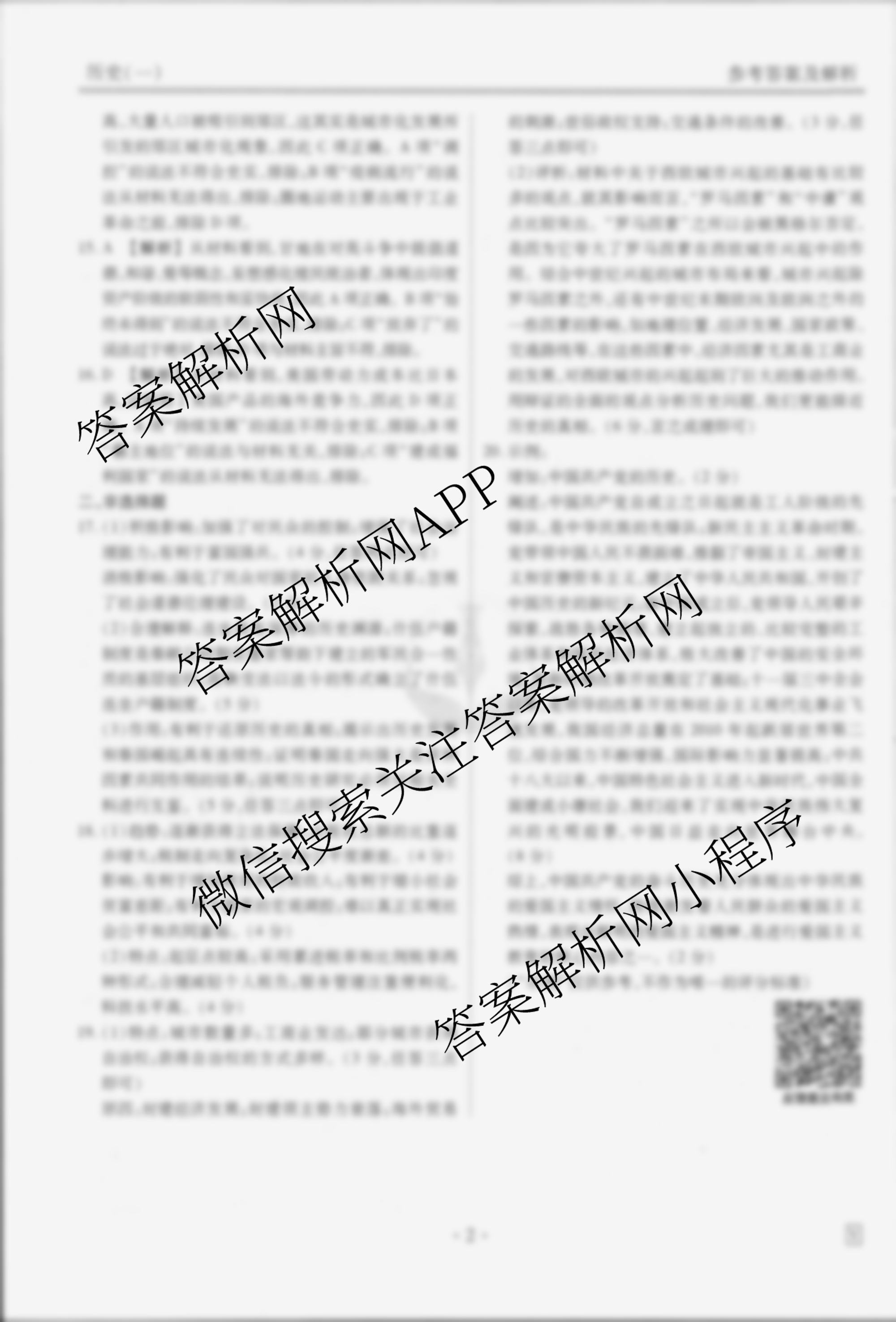 - [高三]衡水金卷先享题信息卷 2025年普通高中学业水平选择性考试模拟试题(一)1历史(AH)答案