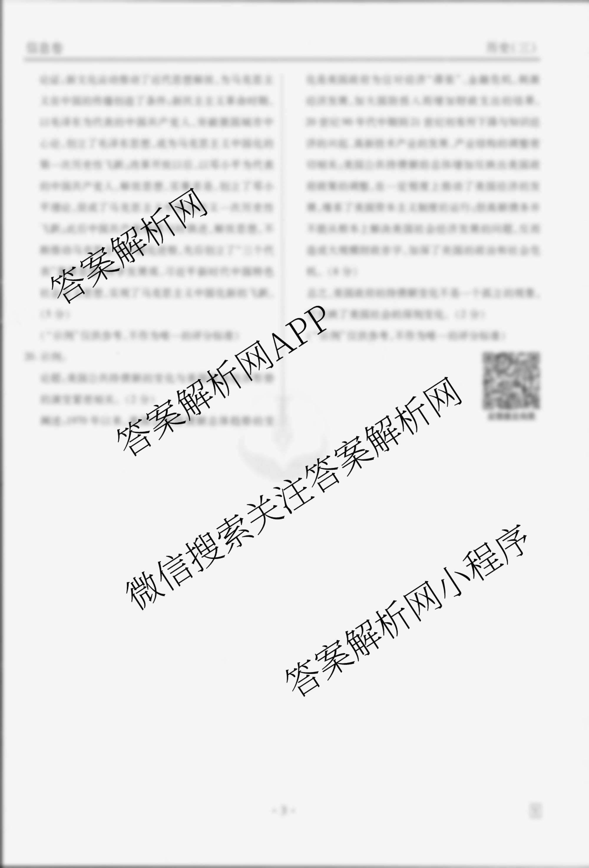 - 高三[衡水金卷先享题]信息卷 2025年普通高中学业水平选择性考试模拟试题(三)3历史(AH)答案