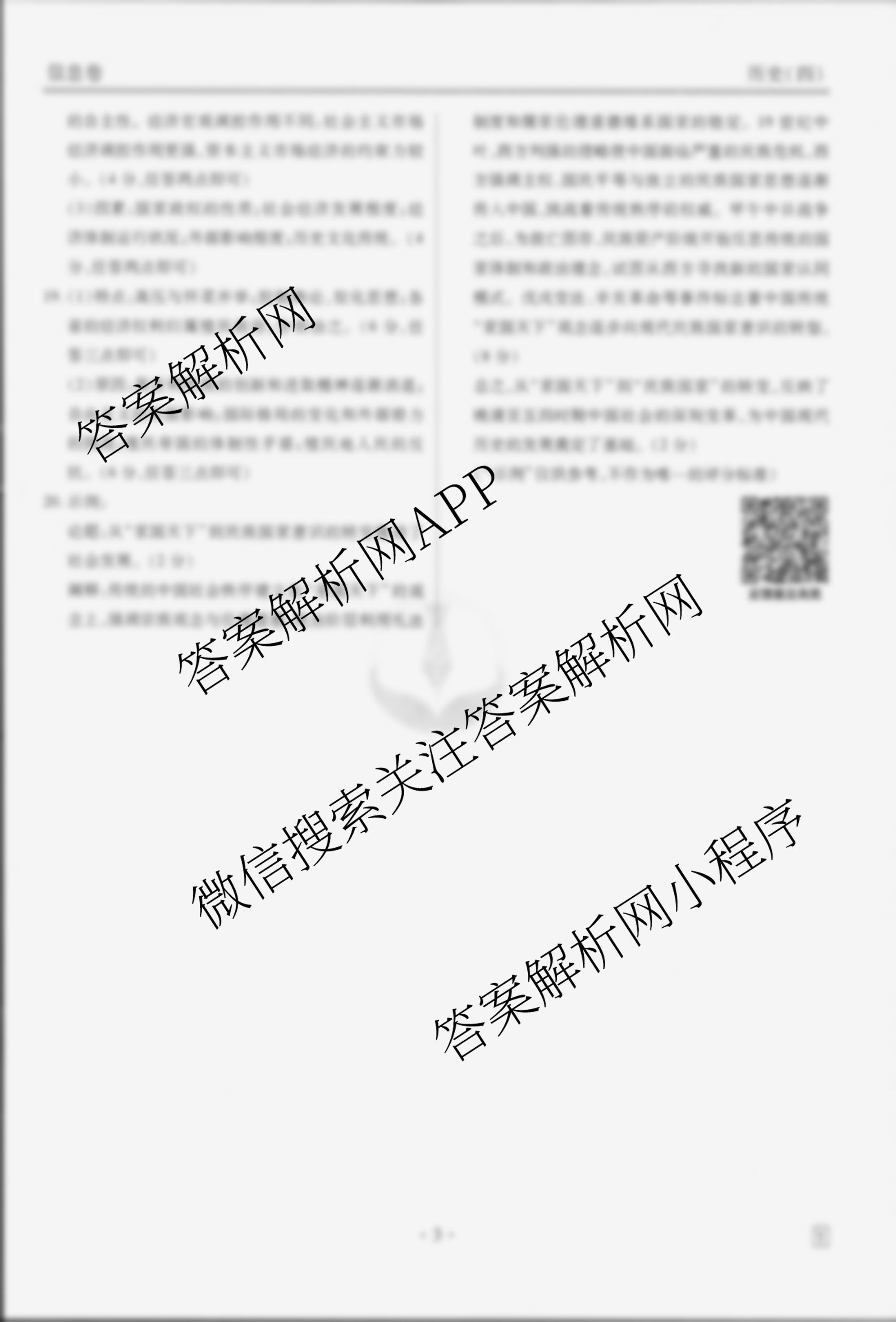 衡水金卷先享题信息卷 2025年普通高中学业水平选择性考试模拟试题(四)4历史(Y)答案