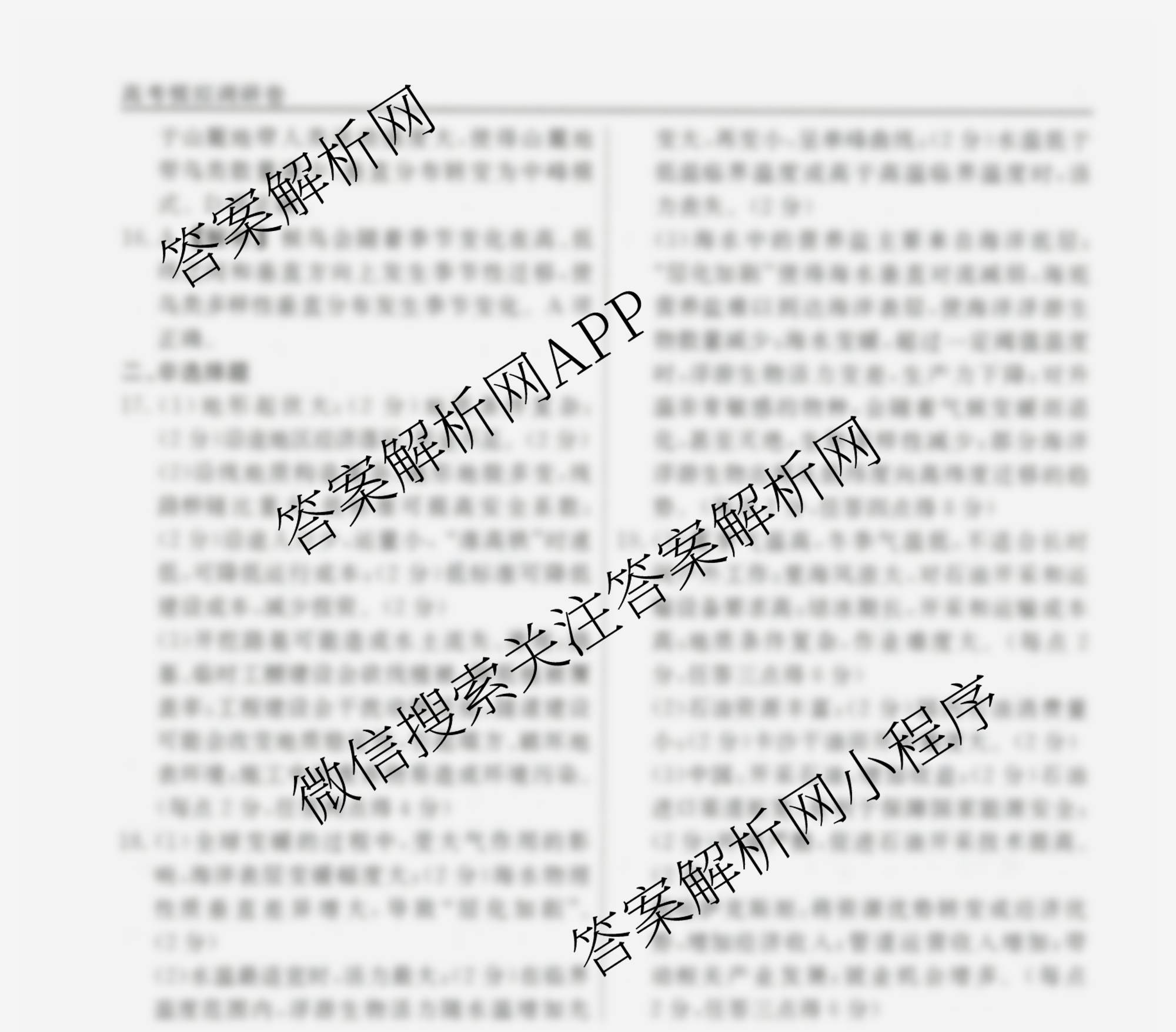 衡水名师卷高考模拟调研卷 2025年普通高等学校招生全国统一考试模拟(二)2地理(圆圈点)答案
