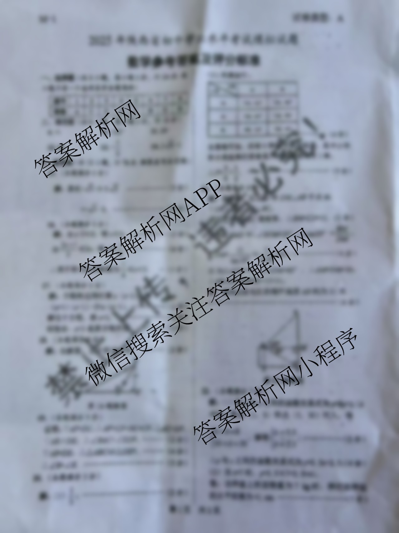 - M-12025年陕西省初中学业水平考试模拟试题A数学答案