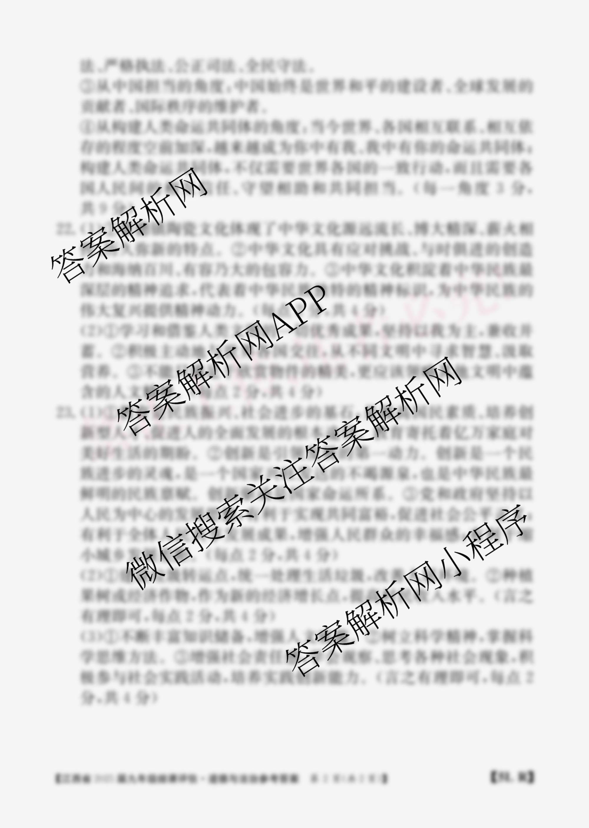 - (九年级)江西省2025届结课评估[5L]道德与法治(R)答案