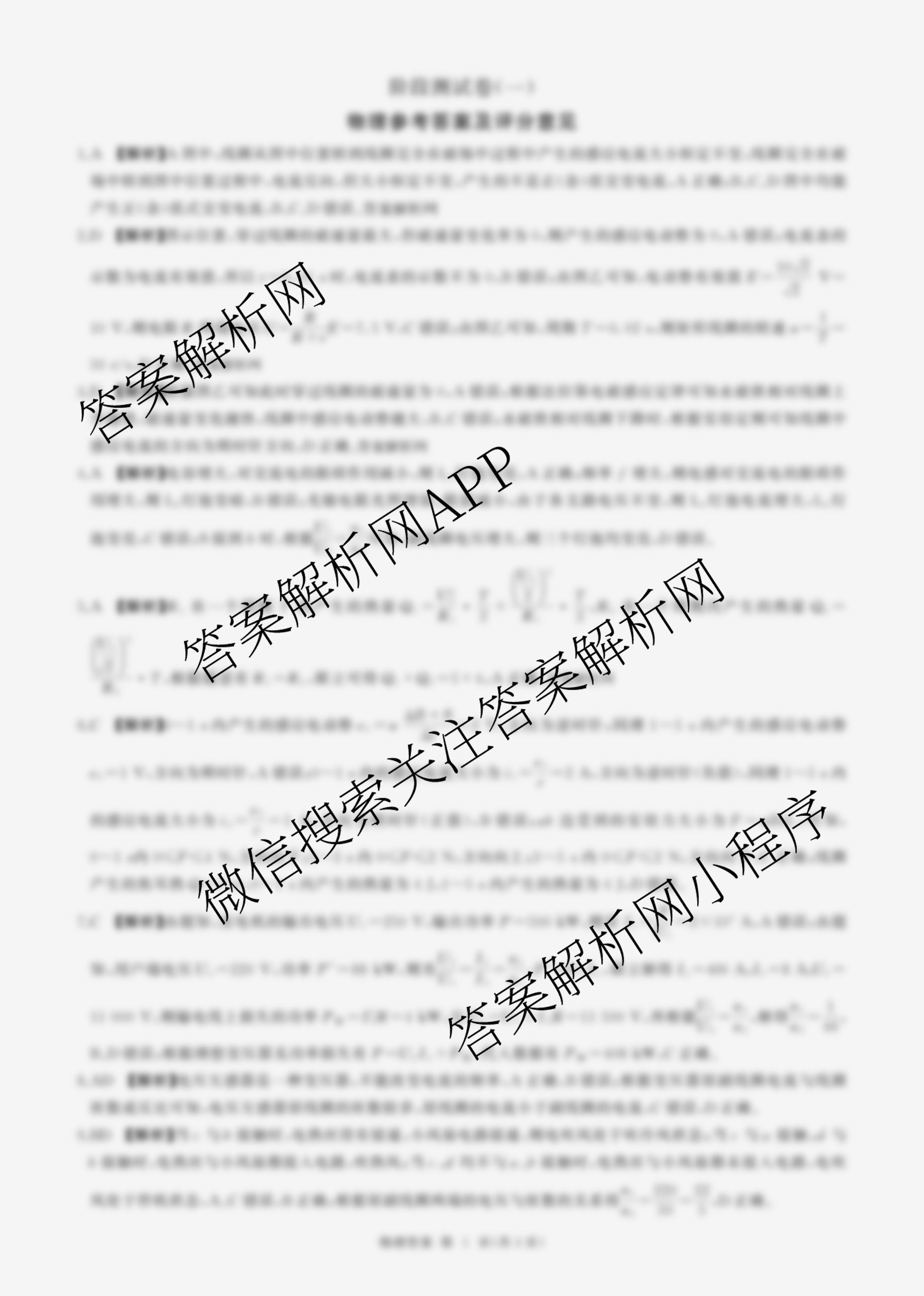 - (高二)[百师联盟]2024-205学年下学期阶段测试卷(一)1物理(75分钟单选)答案