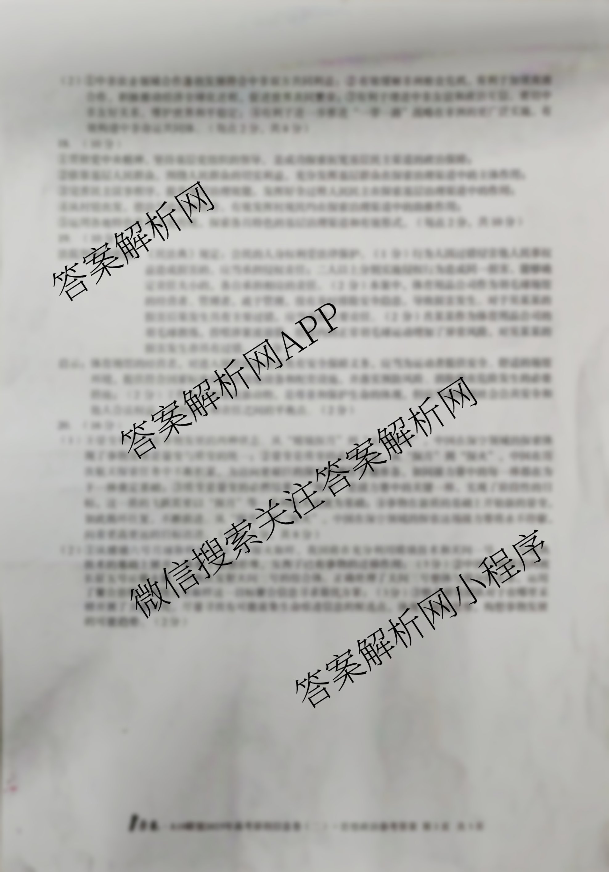 - [高三]1号卷·A10联盟2025年高考原创信息卷(二)政治答案
