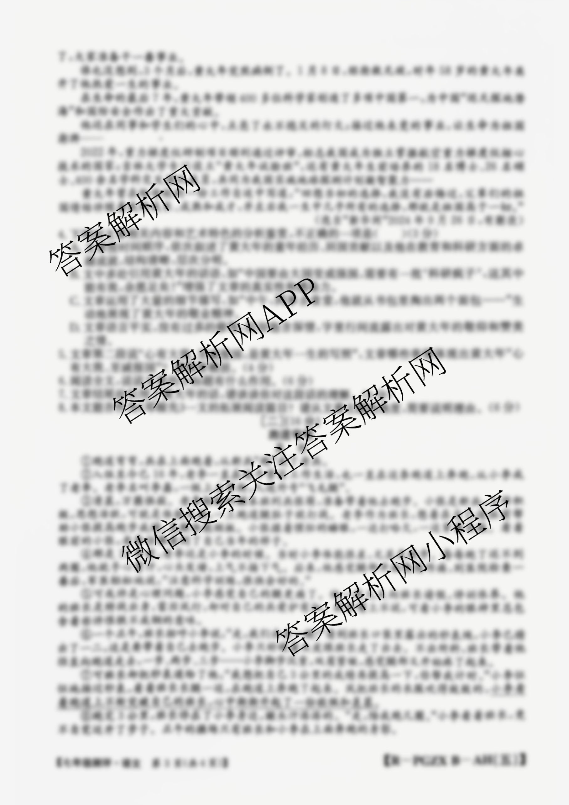- 2024-2025安徽省[七年级]测评[PGZXB-AH(五)]语文(R)试题