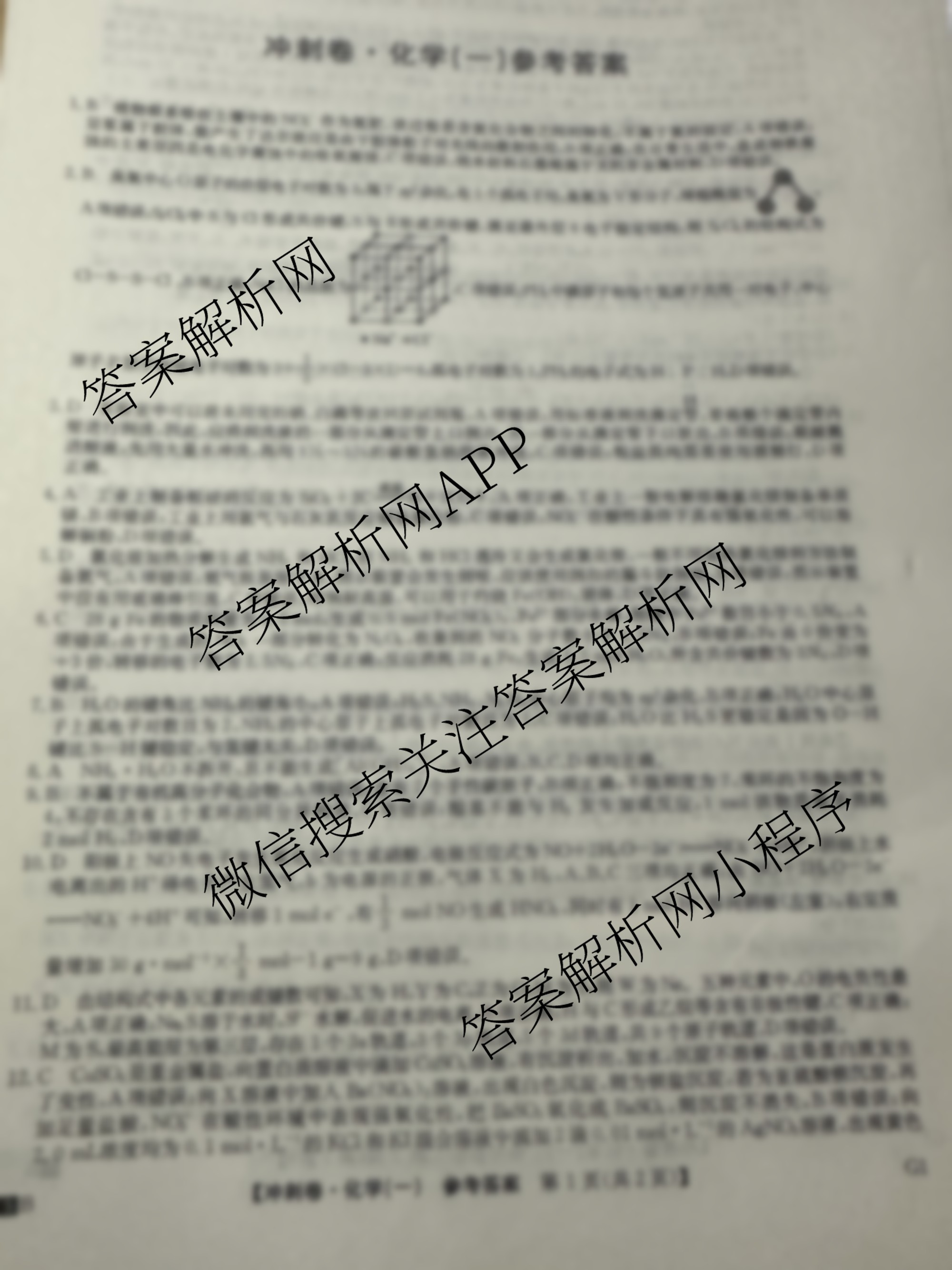 - [高三]2025年普通高中学业水平选择性考试冲刺压轴卷(一)1化学(G2)答案