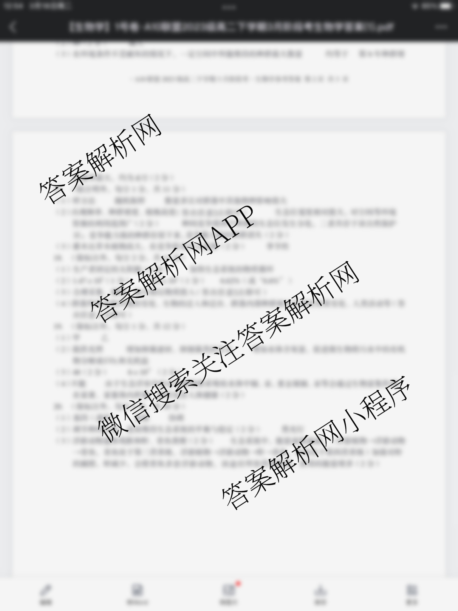 - [高二][1号卷]A10联盟2023级下学期3月阶段考考试生物试题