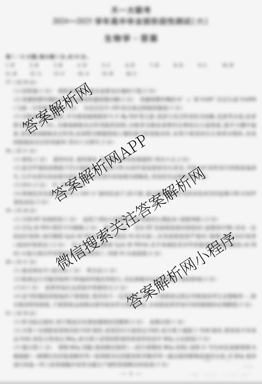 - 2024-2025(高三)天一大联考·学年高中毕业班阶段性测试(六)生物答案