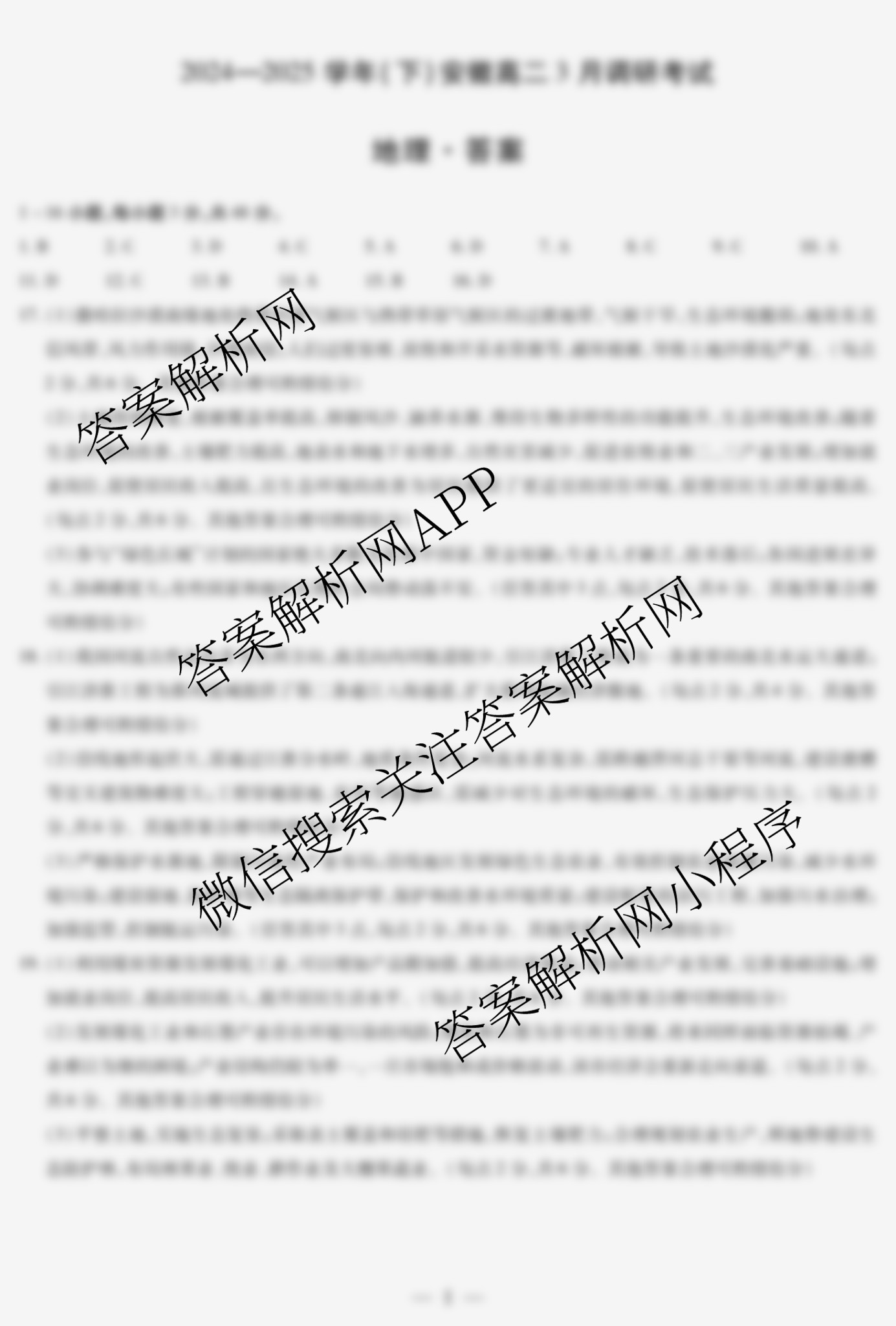 - [高二](天一大联考)·2024~2025学年(下)安徽3月调研考试地理答案