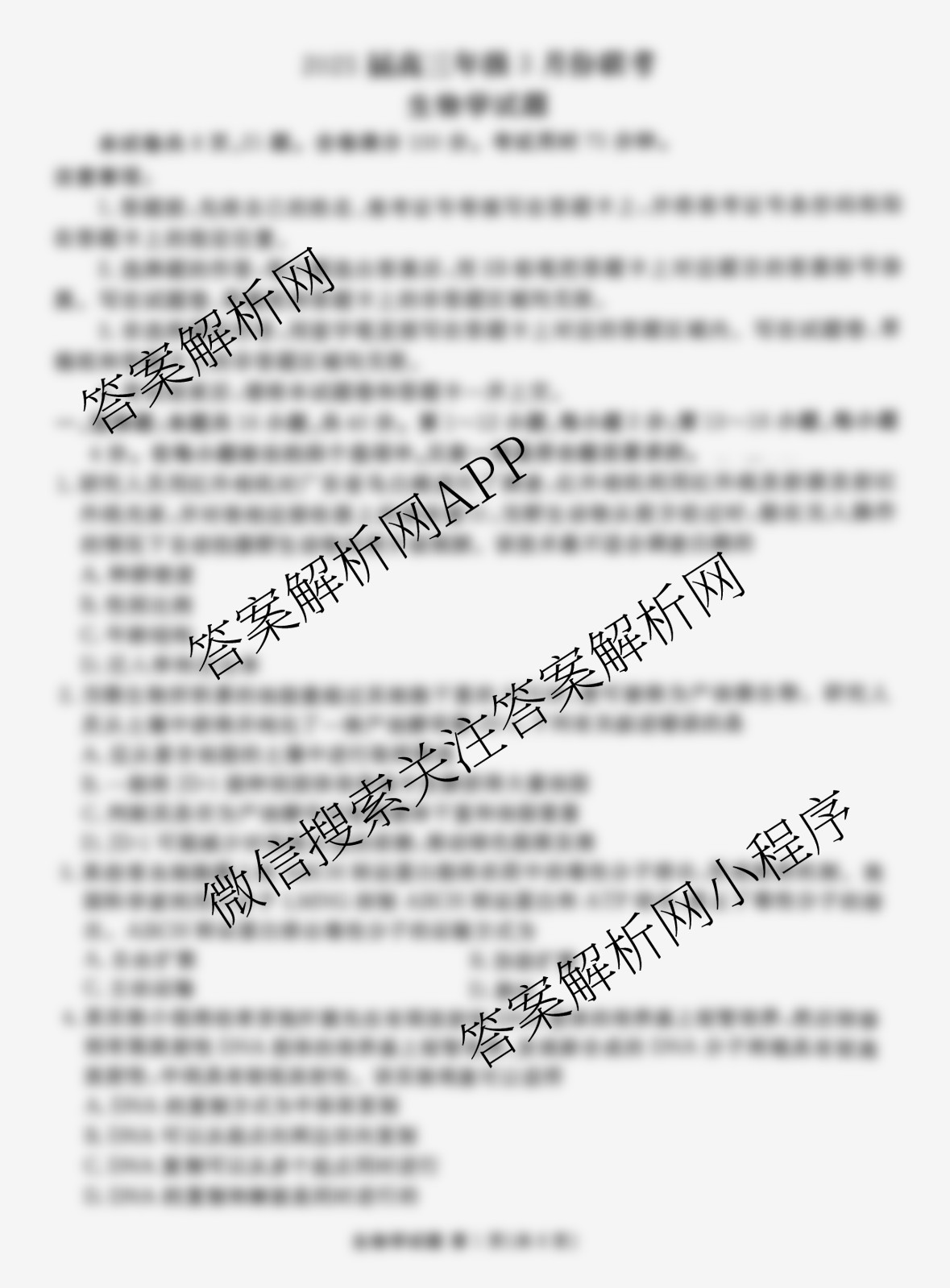 - 2025届[高三]衡水大联考·年级3月份联考(GD)生物试题