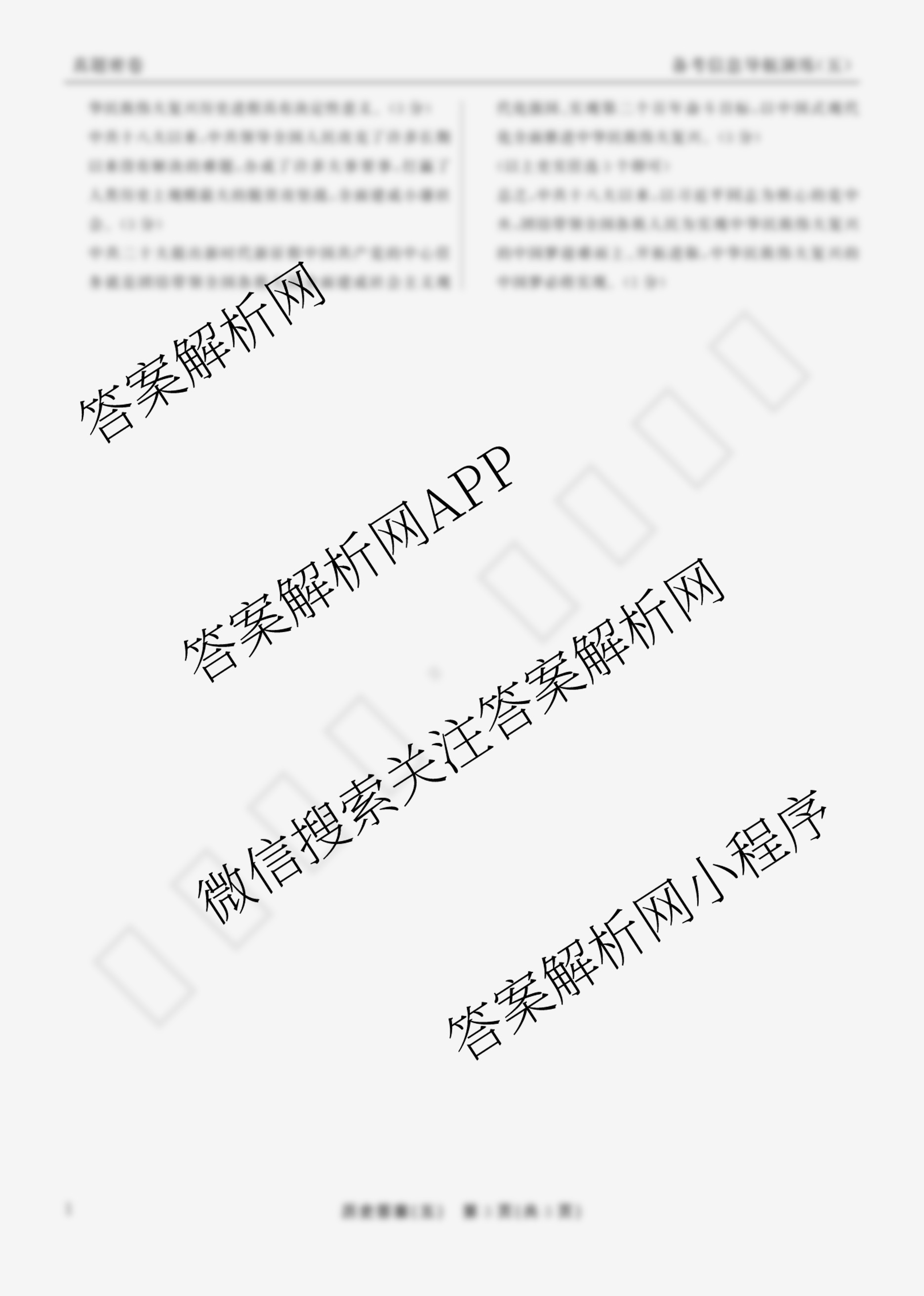 - 2024~2025(真题密卷)·学年度备考信息导航演练(五)5历史(5)答案