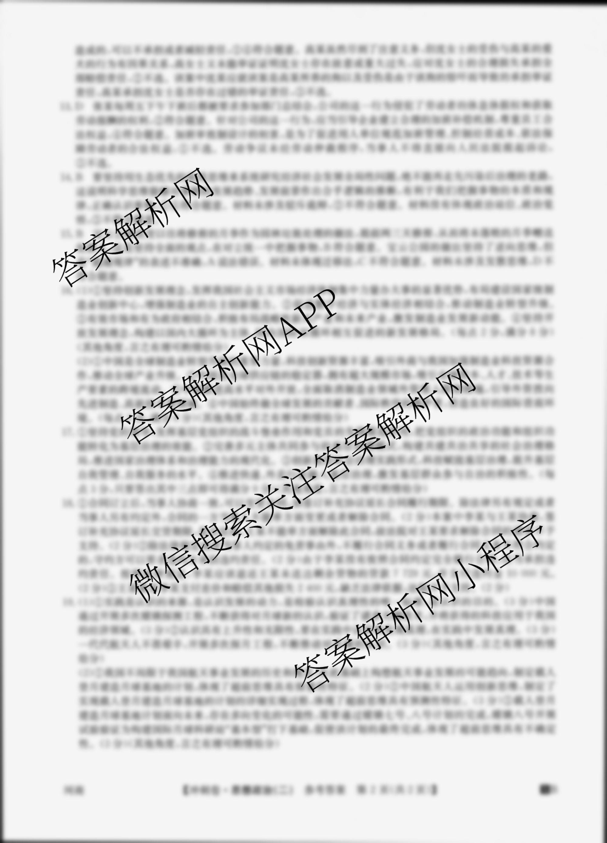 - 2025年安徽省普通高中学业水平选择性考试冲刺压轴卷(二)2政治(安徽)答案