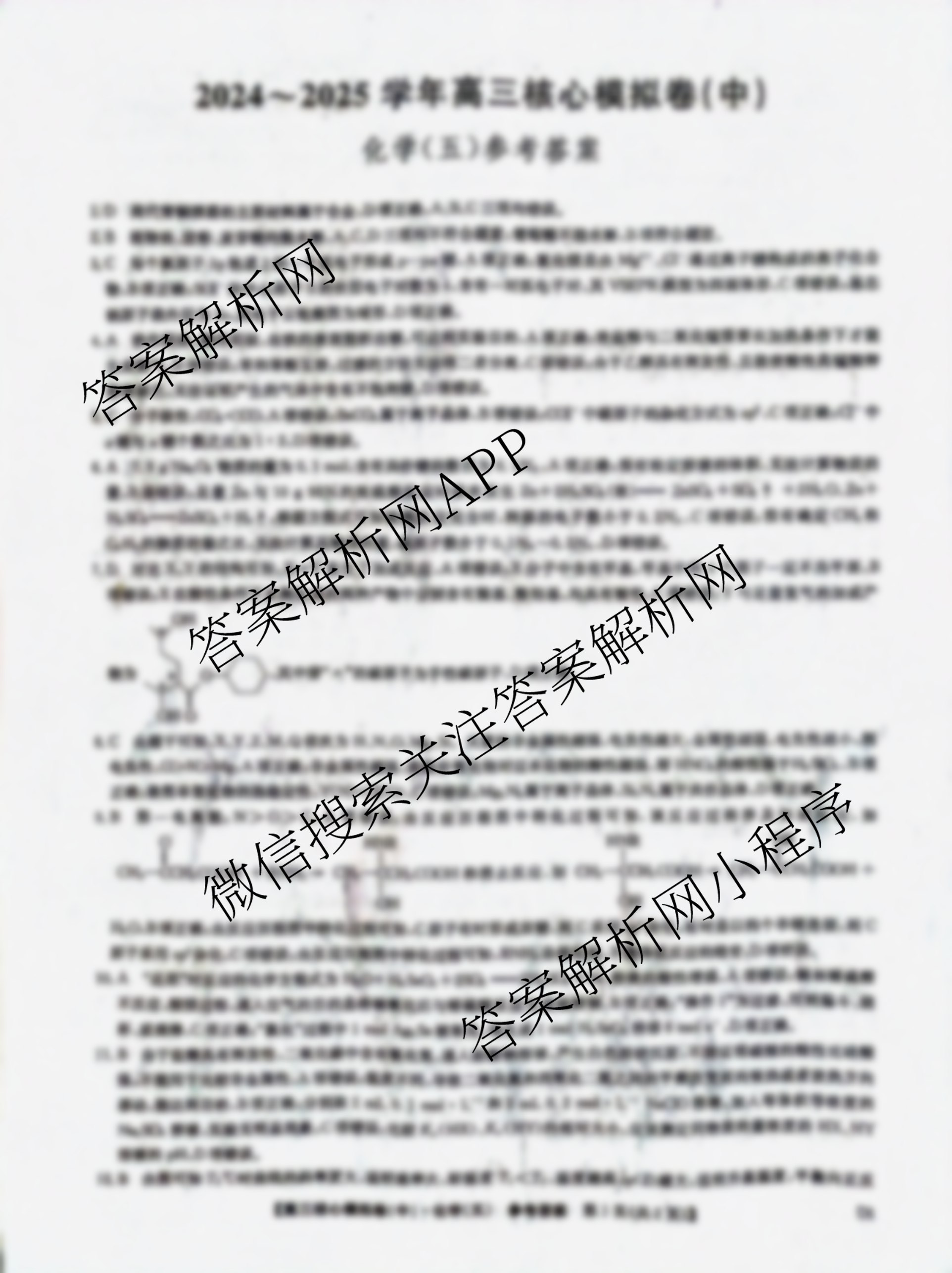 2024~2025九师联盟学年[高三]核心模拟卷(中)(五)5化学(D1)答案