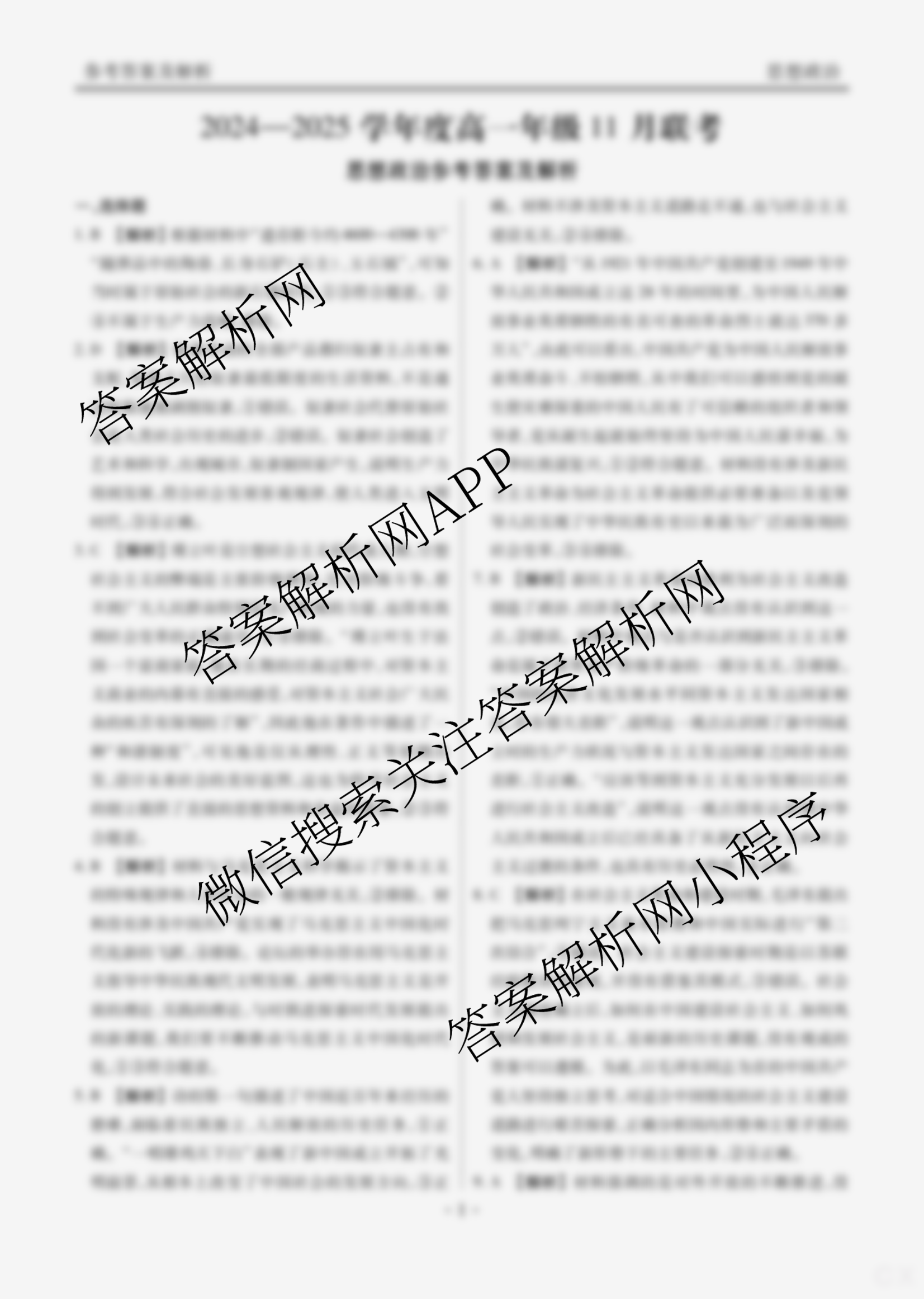 - 2024~2025衡水大联考广东省学年度(高一)年级11月联考政治答案