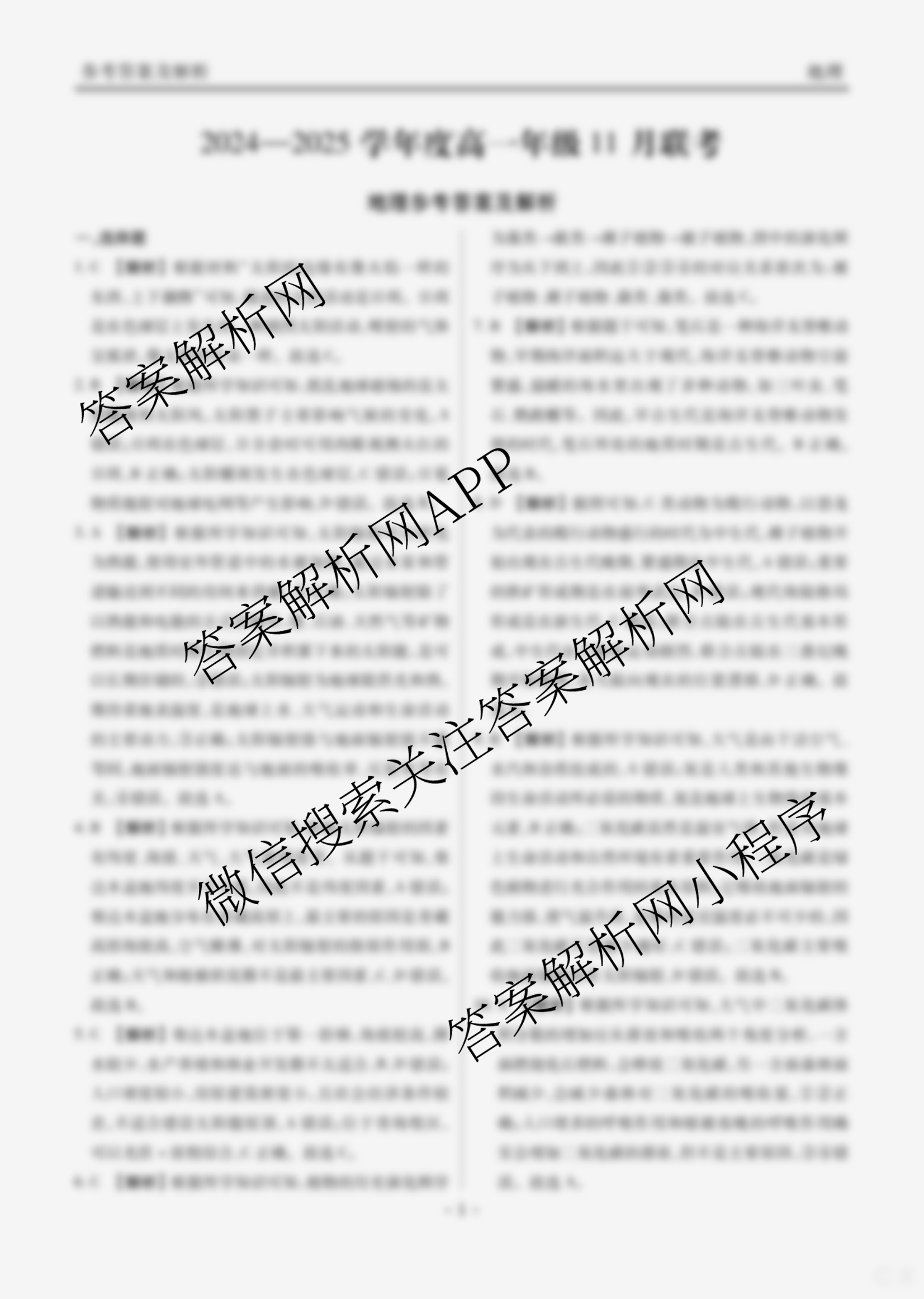 - 2024-2025(高一)衡水大联考·广东省学年度年级11月联考地理答案