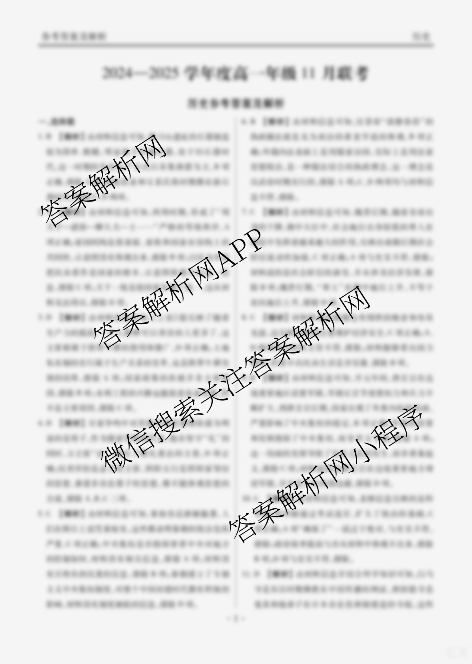 - (高一)衡水大联考·广东省2024~2025学年度年级11月联考历史答案