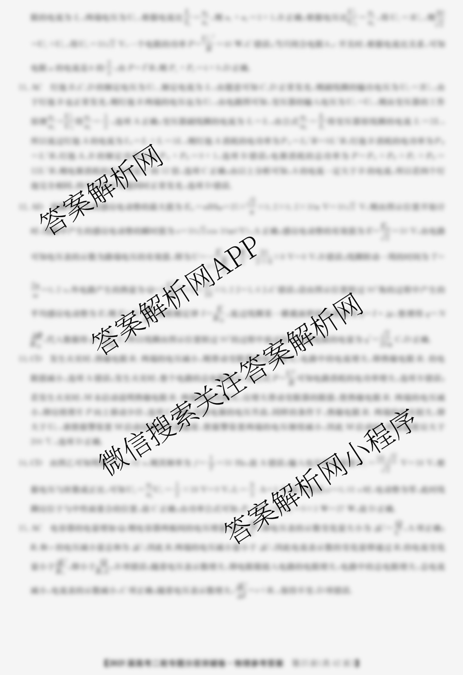 九师联盟2025届高考二轮专题分层突破卷物理(十)10答案