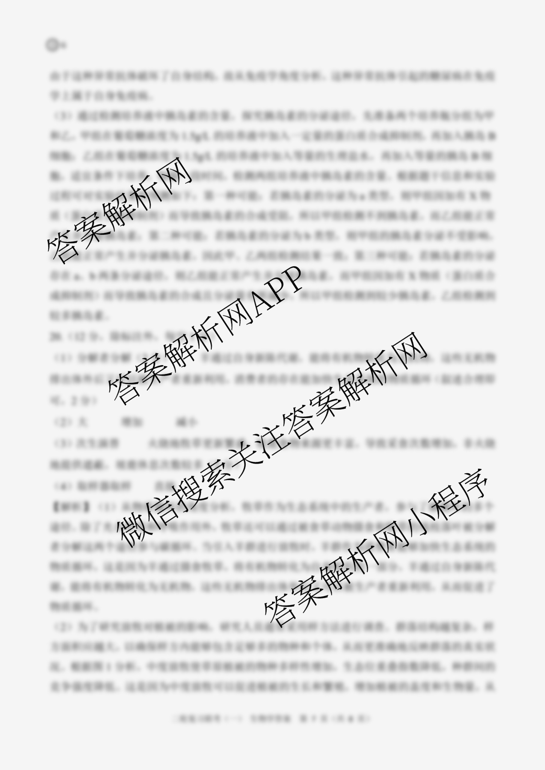 - 2025届[高三]百师联盟二轮复习联考(一)1生物(百N)答案