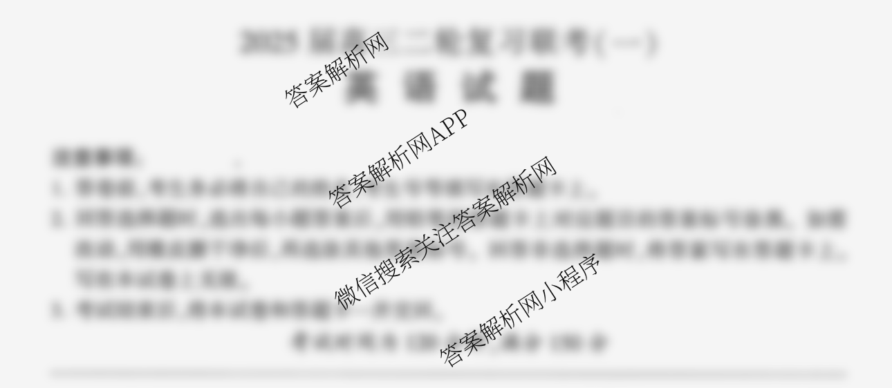 - (高三)(百师联盟)2025届二轮复习联考(一)1英语(百B)答案