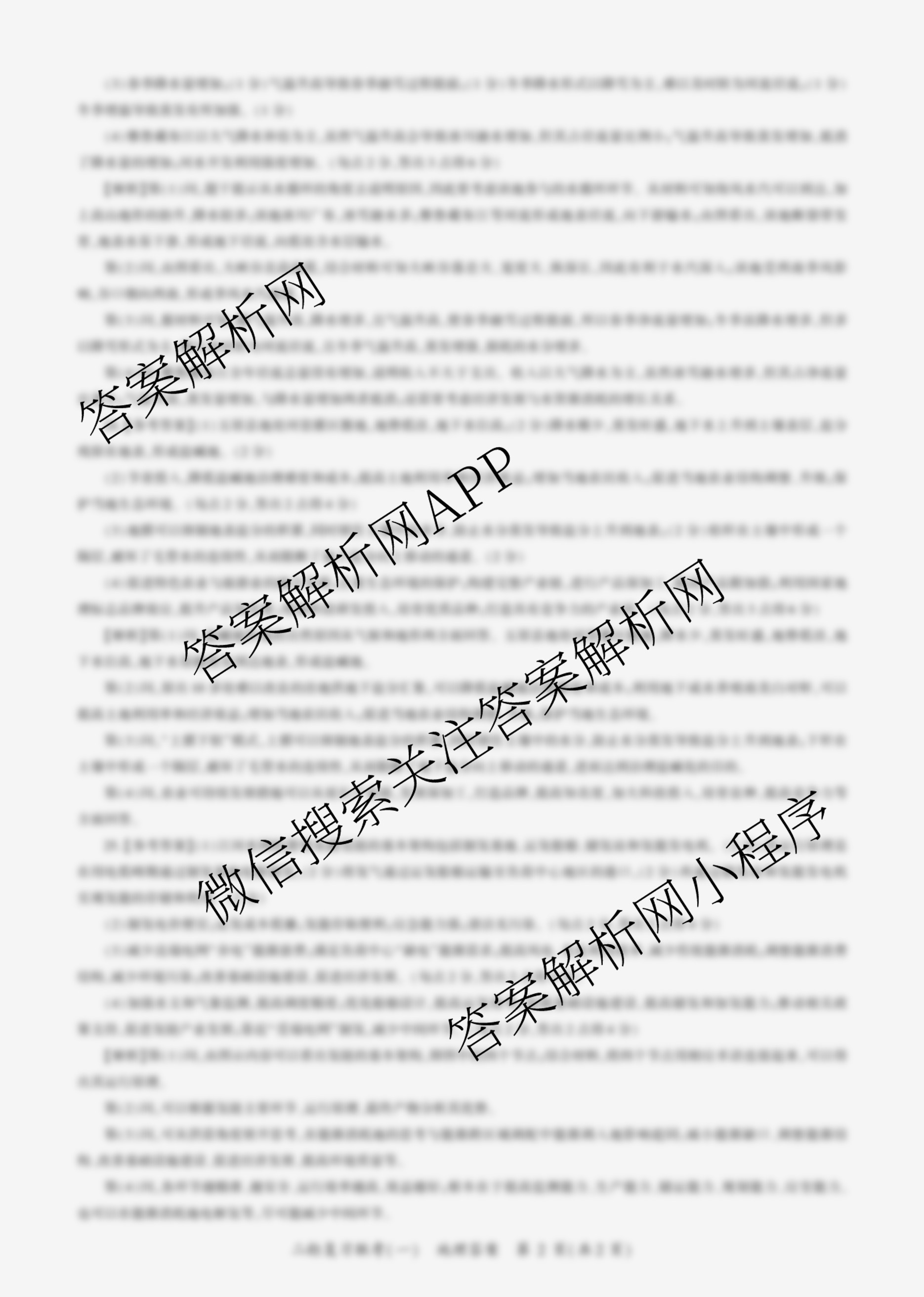 - (百师联盟)2025届(高三)二轮复习联考(一)1地理(百G)答案
