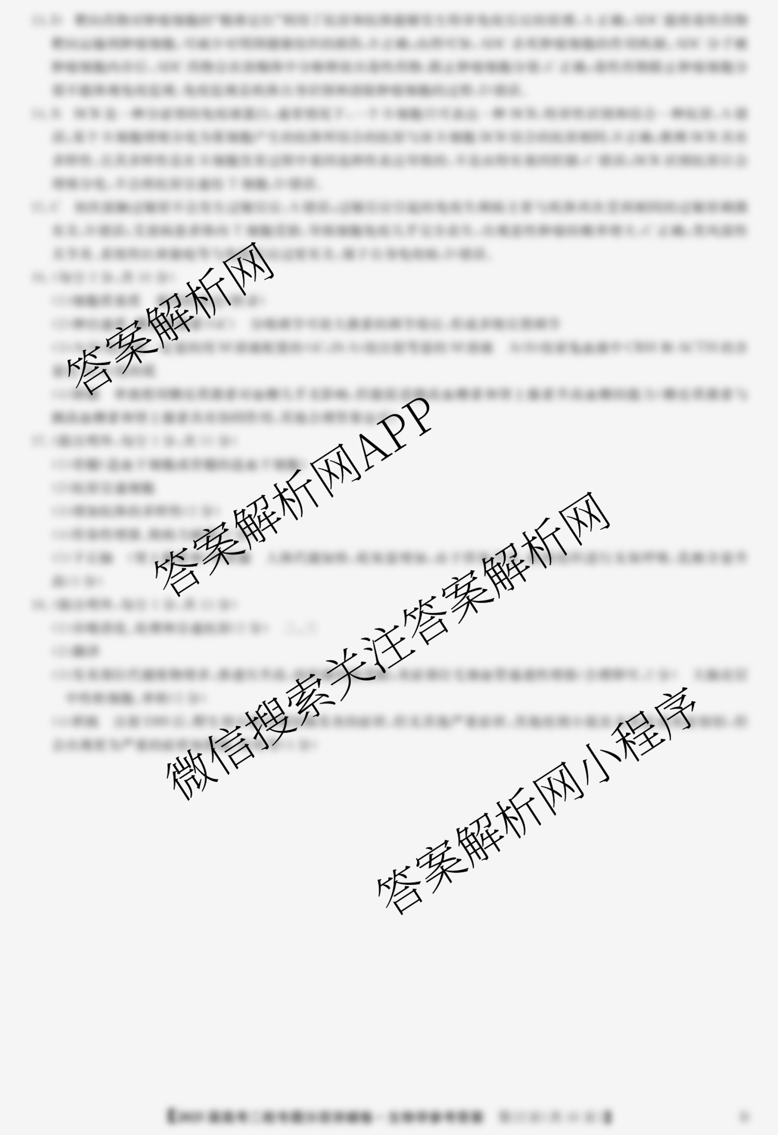 九师联盟2025届高考二轮专题分层突破卷生物(B)(十一)11答案