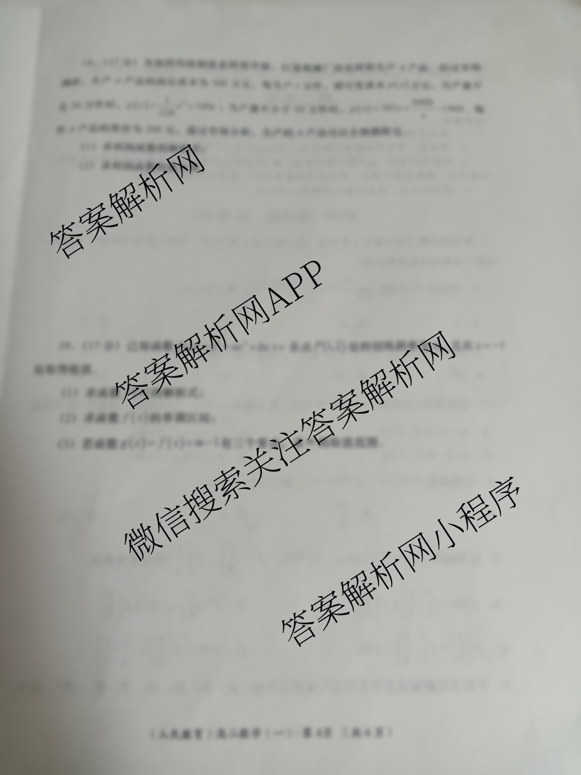- [高二]2024~2025学年度第二学期[周期学业能力评鉴](一)数学(人民教育)答案