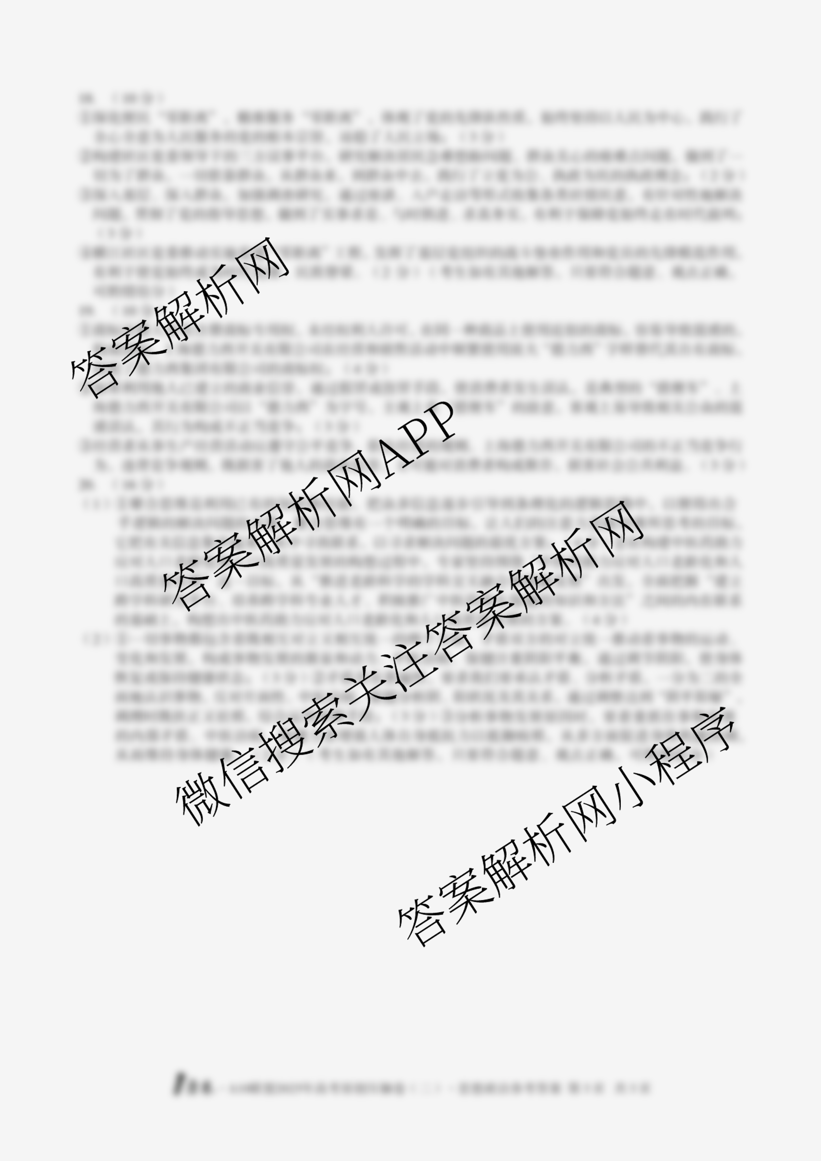- 高三[1号卷]A10联盟2025年高考原创压轴卷(二)2政治答案