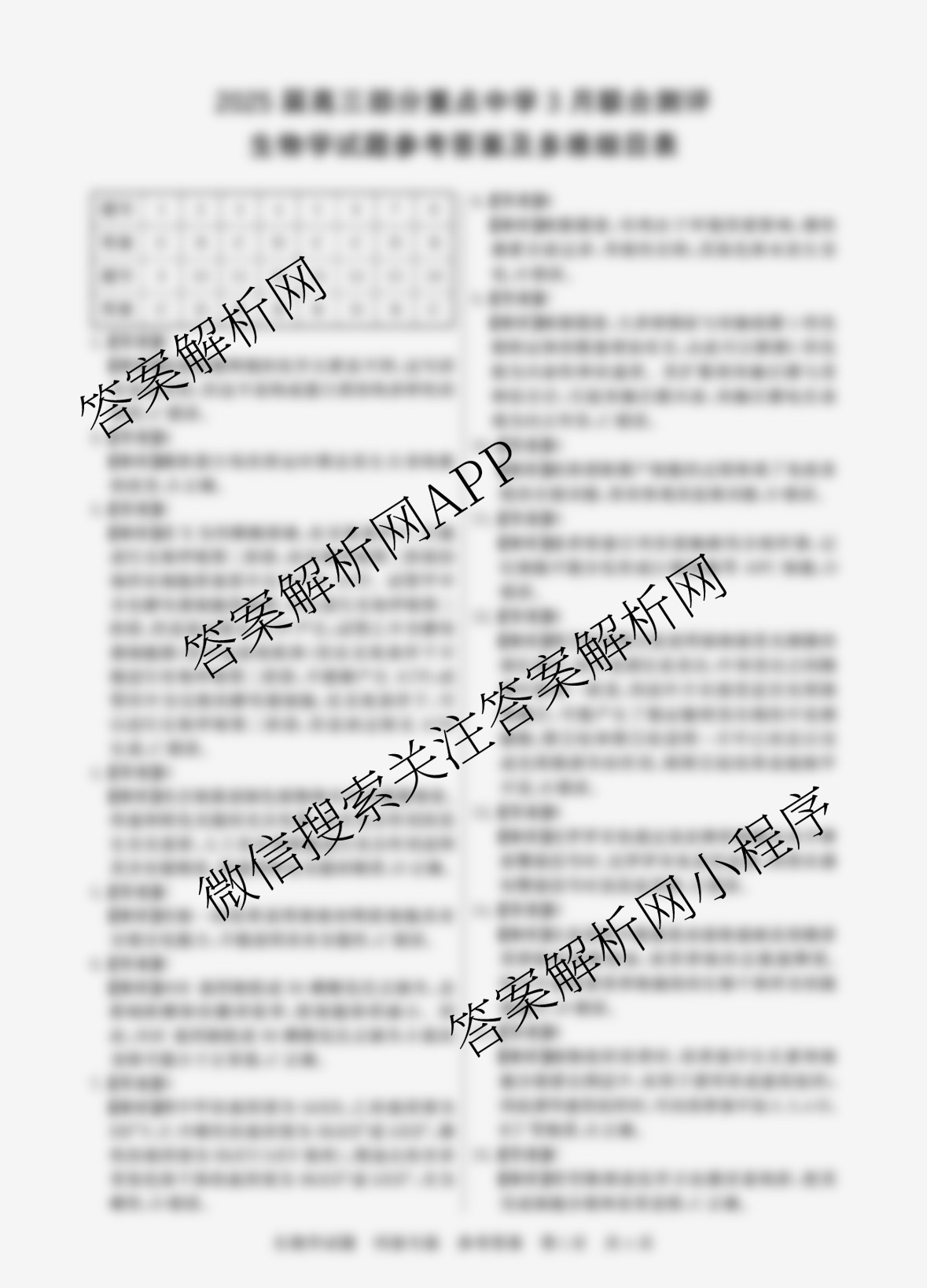 - [高三]2025届部分重点中学3月联合测评英语(无字母)答案