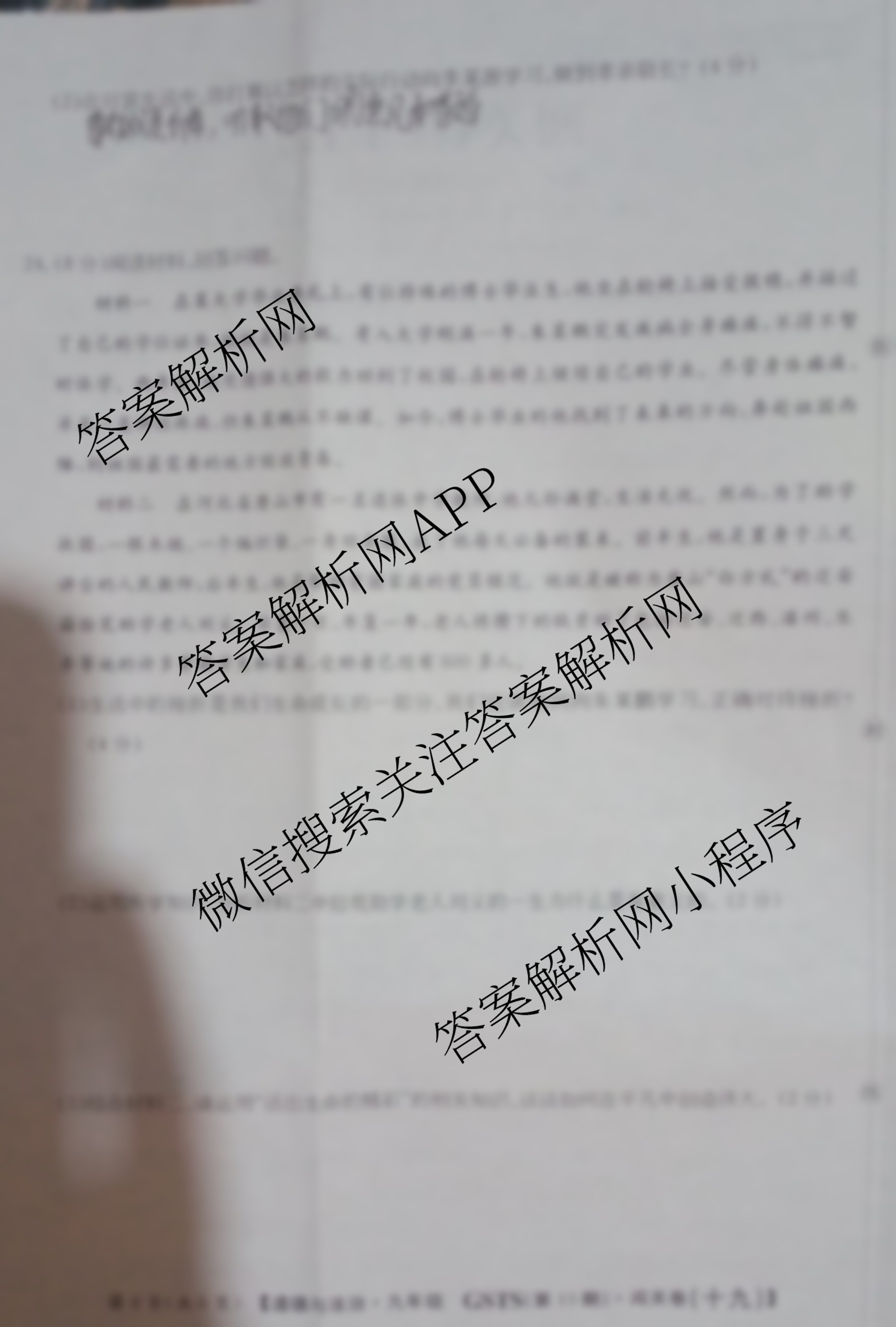 2024-2025 闯关卷 九年级 道德与法治(GSTS)(十九)19试题,目前学英语报答案已经汇总了2024-2025 闯关卷 九年级 道德与法治(GSTS)(十九)19试题的各科答案和试卷,获取更多闯关卷答案解析,请在关注本站。