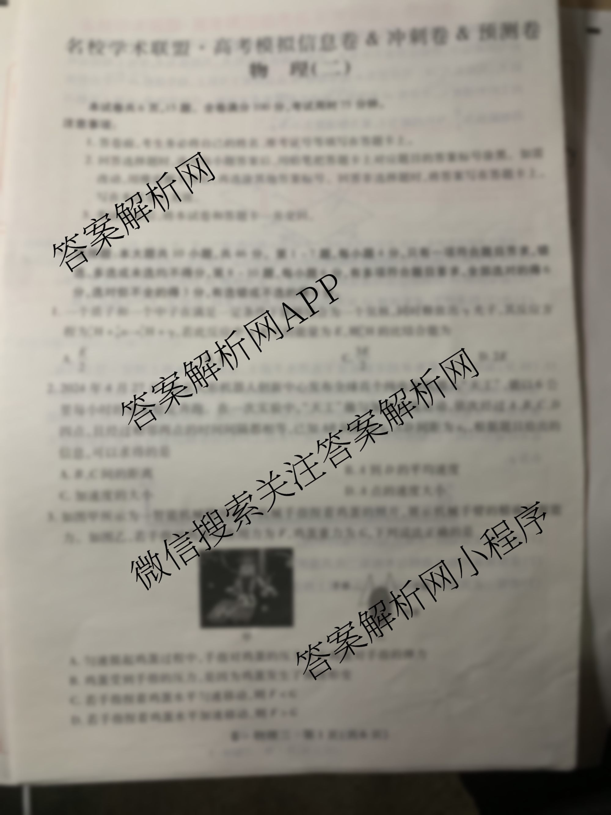 - (高三)2025届[智慧上进]·名校学术联盟·高考模拟信息卷&冲刺卷&预测卷(二)2物理(HN)试题